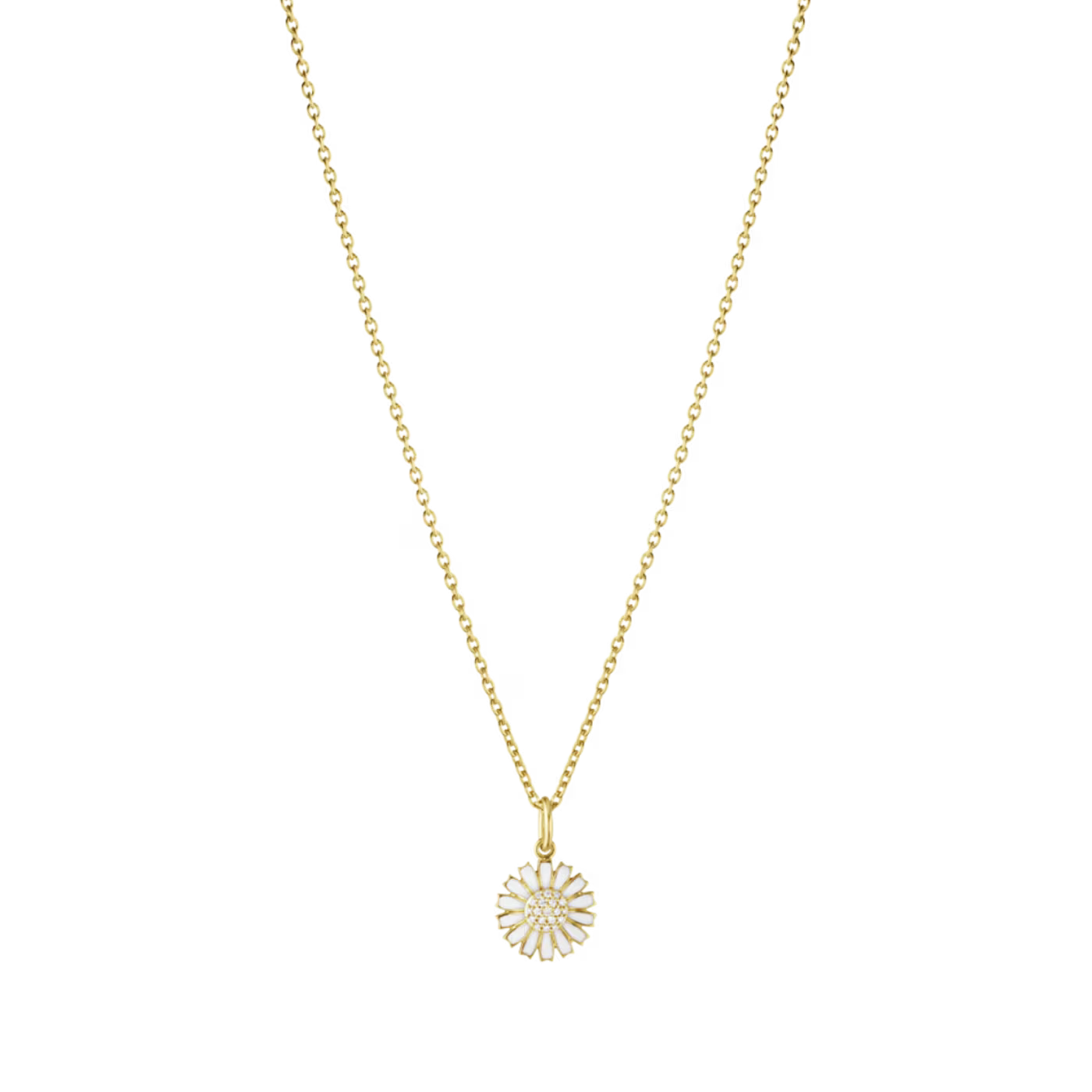 Georg Jensen Daisy 18ct Gold Plated Diamond and White Enamel Necklace (GGN-1895)