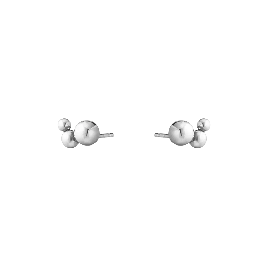 These delicate ear studs add a subtle elegance to any ensemble. Formed by a cluster of sterling silver spheres, their design reinterprets the Art Nouveau legacy of Georg Jensen in a modern way, drawing inspiration from his earliest holloware creations and the fruit motifs that adorned them, while providing a contemporary piece of jewellery design.