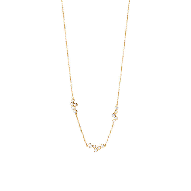 A minimalist and elegant piece designed for everyday and special occasions alike, this stunning 18kt gold necklace features clusters of brilliant-cut diamonds scattered around the chain. The diamonds are set in the signature Georg Jensen way, which is designed to maximise their brilliance by capturing more light.