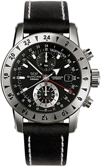Glycine Watch Airman 9. Whenever the subject of aviation comes up, the name of Glycine is mentioned as one of the pioneers of watchmaking for pilots and frequent travellers. Beginning in 1953, Glycine started production of the Airman, a watch that became legendary for introducing multiple time zone watches to the market. Since then, Glycine has developed an unbroken chain of aviation watches, ranging from successively more complex world timers to unique collectors items. In 2002 Glycine reached a new pinnacle when it launched a genuine innovation, the Airman 7, featuring three mechanical movements simultaneously displaying the time in four time zones.
