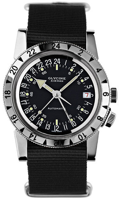 Glycine Watch Airman 1 Purist. Whenever the subject of aviation comes up, the name of Glycine is mentioned as one of the pioneers of watchmaking for pilots and frequent travellers. Beginning in 1953, Glycine started production of the Airman, a watch that became legendary for introducing multiple time zone watches to the market. Since then, Glycine has developed an unbroken chain of aviation watches, ranging from successively more complex world timers to unique collectors items.