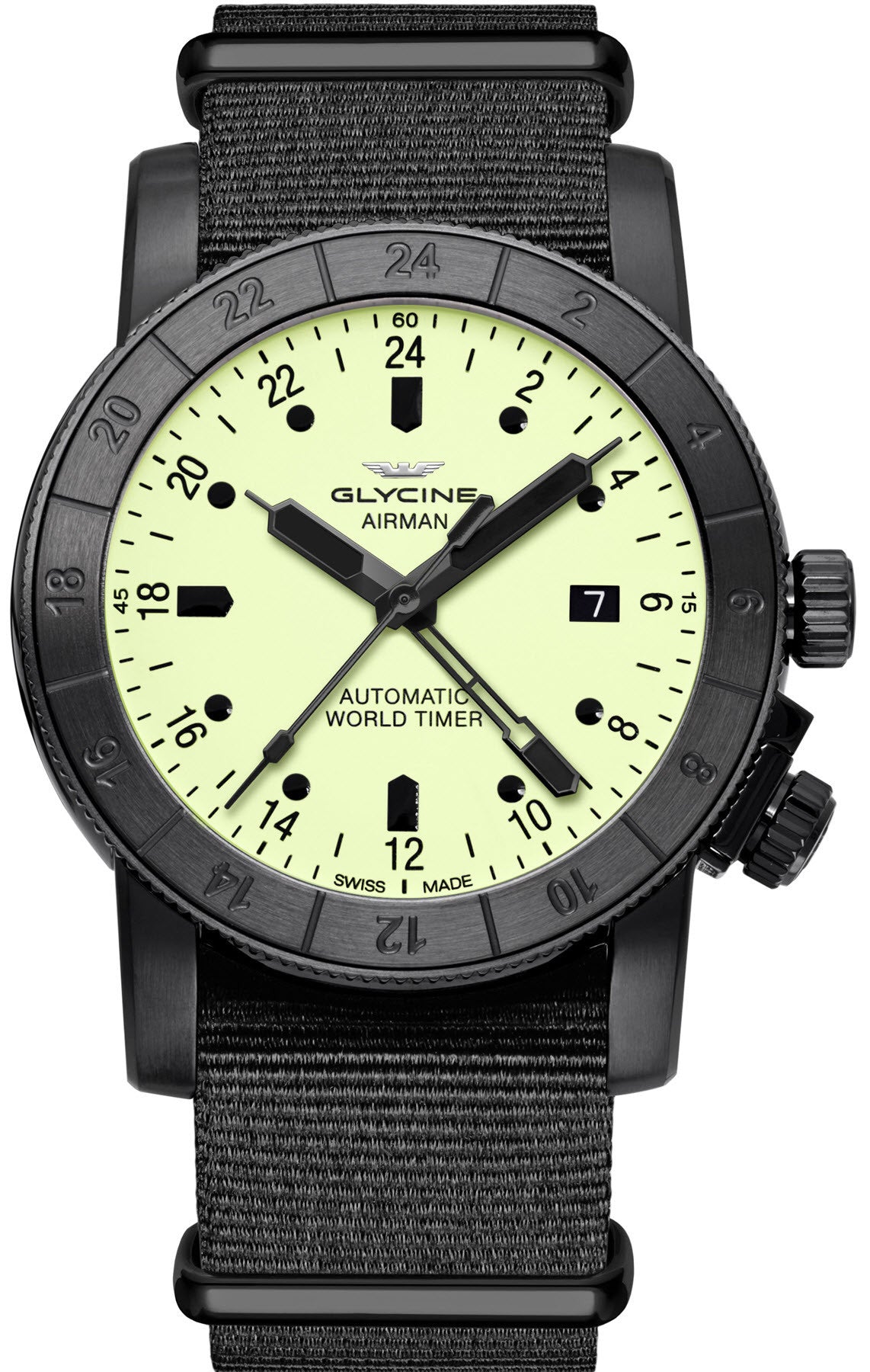 Glycine Watch Airman 42 . Whenever the subject of aviation comes up, the name of Glycine is mentioned as one of the pioneers of watchmaking for pilots and frequent travellers. Beginning in 1953, Glycine watches started production of the Airman, a watch that became legendary for introducing multiple time-zone watches to the market. Since then, Glycine watches have developed an unbroken chain of aviation watches, ranging from successively more complex world timers to unique collectors items.