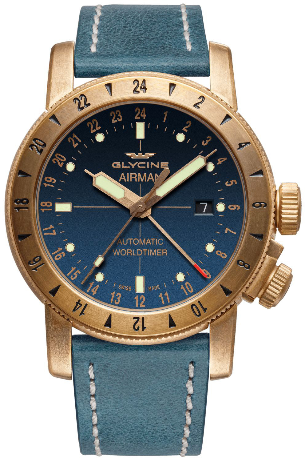 Glycine Watch Airman 44 Bronze GL0167. Whenever the subject of aviation comes up, the name of Glycine watches is mentioned as one of the pioneers of watchmaking for pilots and frequent travellers. Beginning in 1953, Glycine started production of the Airman, a watch that became legendary for introducing multiple time zone watches to the market.