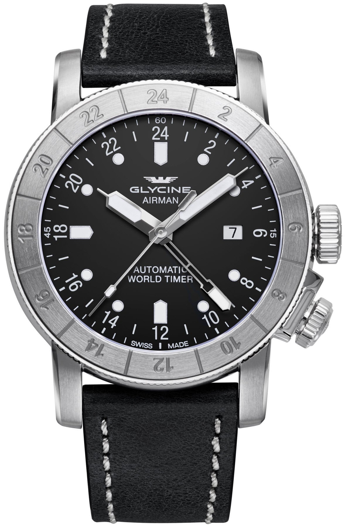 Glycine Watch Airman 44 GL0056. Whenever the subject of aviation comes up, the name of Glycine is mentioned as one of the pioneers of watchmaking for pilots and frequent travellers. Beginning in 1953, Glycine watches started production of the Airman, a watch that became legendary for introducing multiple time-zone watches to the market. Since then, Glycine watches have developed an unbroken chain of aviation watches, ranging from successively more complex world timers to unique collectors items.