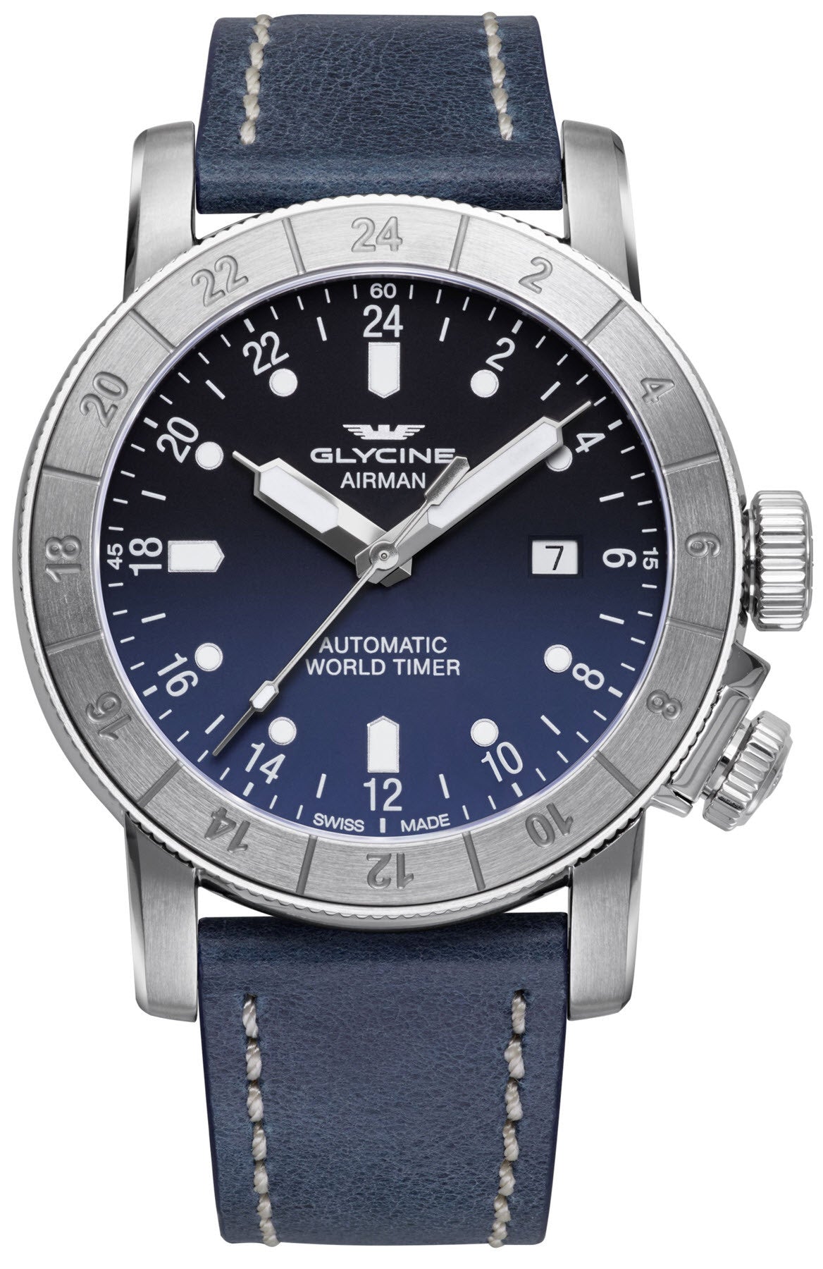 Glycine Watch Airman 44 GL0057. Whenever the subject of aviation comes up, the name of Glycine is mentioned as one of the pioneers of watchmaking for pilots and frequent travellers. Beginning in 1953, Glycine watches started production of the Airman, a watch that became legendary for introducing multiple time zone watches to the market. Since then, Glycine watches have developed an unbroken chain of aviation watches, ranging from successively more complex world timers to unique collectors items.