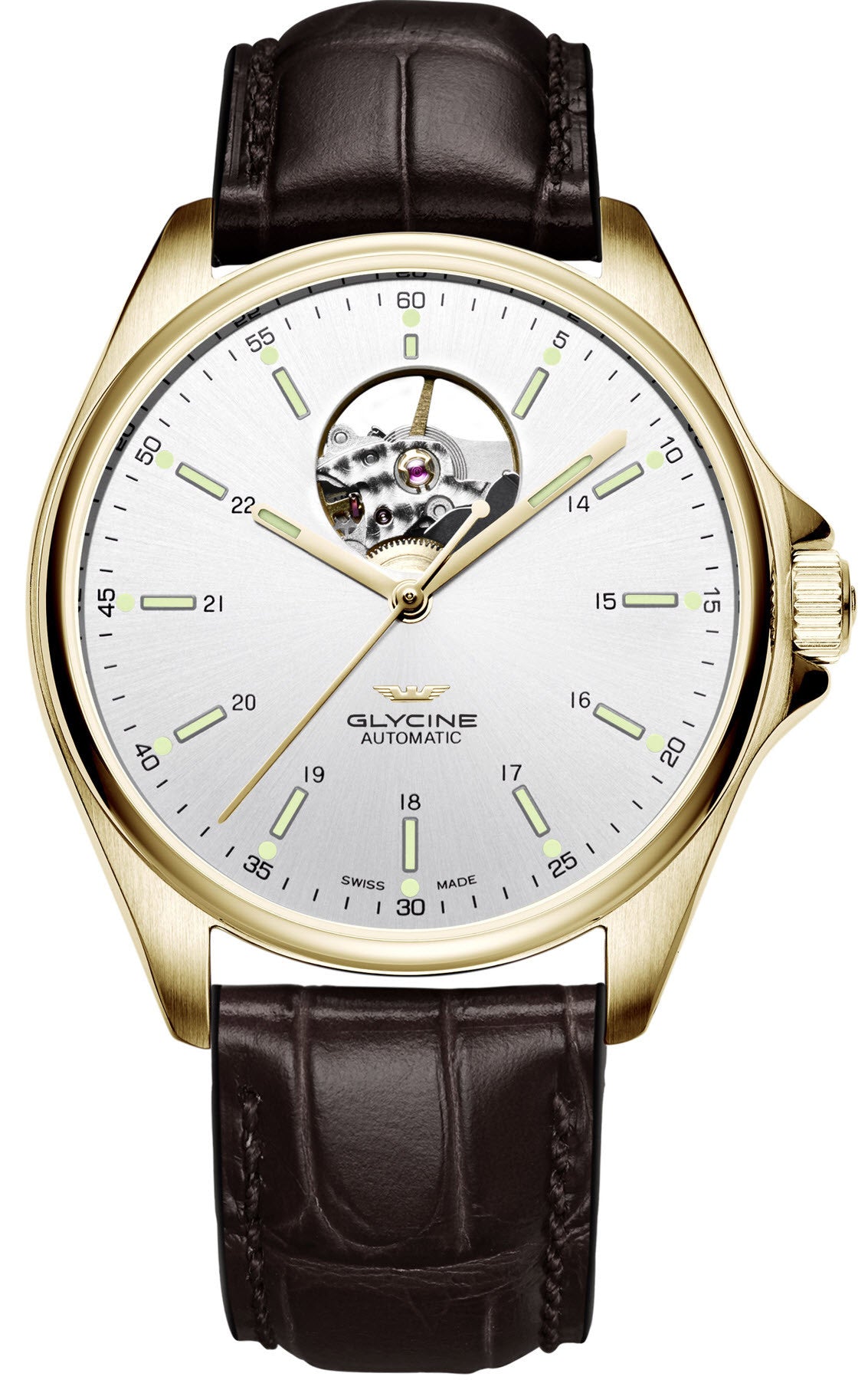Glycine Watch Combat Classic Open Heart GL0121. Glycine watches have served the market with this line of sturdy and captivating watches, made for exacting conditions of wear and use. The precise automatic and chronograph movements are housed in a high grade steel case of rugged construction, offering excellent value for money.