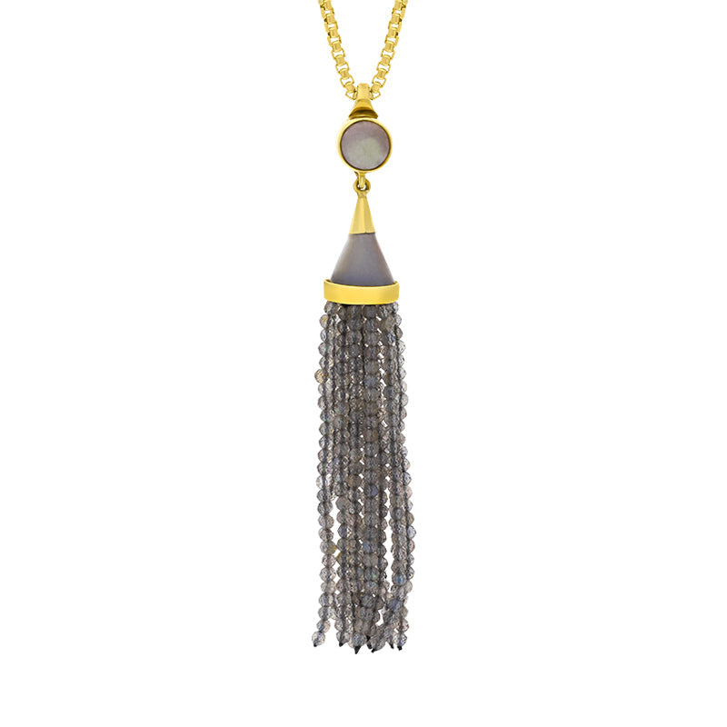 Gold Plated Sterling Silver Labradorite Cascade Tassel Necklace D