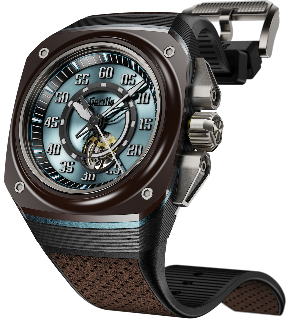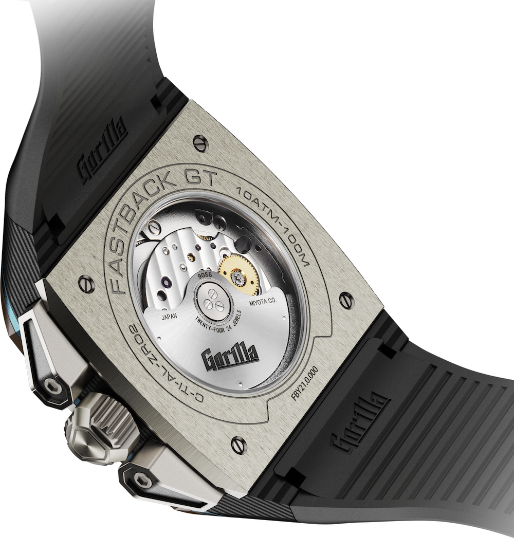 Gorilla Watch Fastback GT Nomad. Derives from the iconic profile of American Muscle Cars. The automotive designer’s ultimate sports car silhouette. A speed-form sculpted to optimize airflow that visually conveys a sense of movement and power.