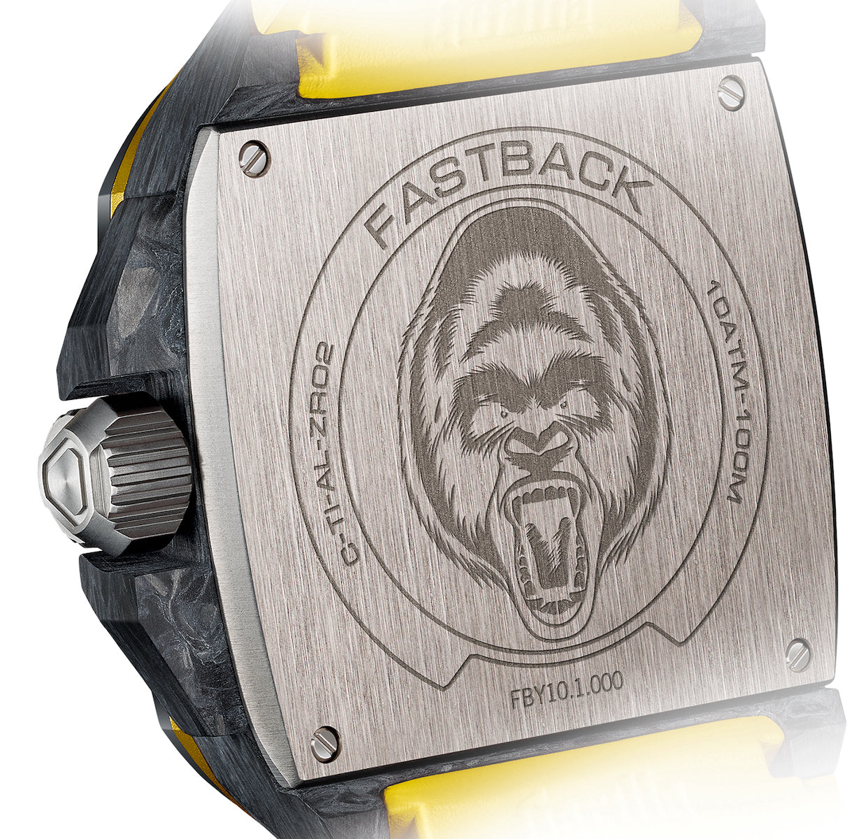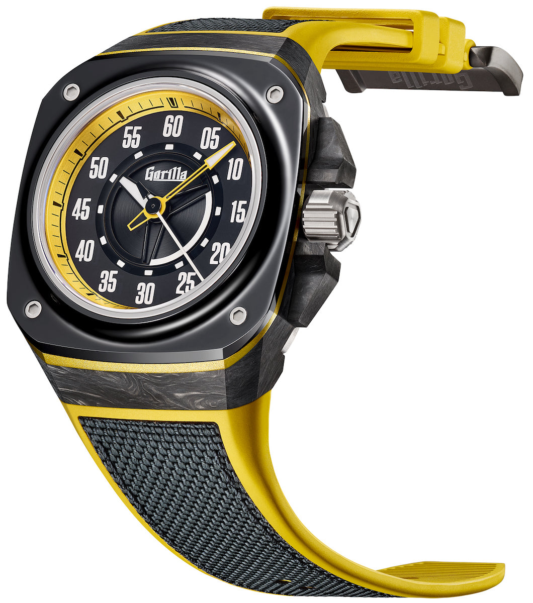 Gorilla Watch Fastback Stinger Yellow. LOUD AND PROUD: Born of our love for Muscle cars, derived from the limited production Fastback “Titanium Collection, the Stinger Yellow Carbon renews with the historical 70ies automotive color pallet.
