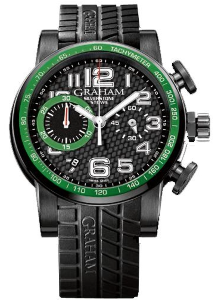 Graham Watch Silverstone Stowe Racing Green. Graham Watches, known as the father of the chronograph, George Graham was also the brains behind inventions such as the dead beat cylinder escapement, the first wall chronograph and the mercury pendulum. Perpetuating this spirit of remarkable innovations and technical expertise, Graham is now a contemporary watch brand dedicated to enthusiasts of the mechanical arts. Graham watches evoke a powerful fascination among connoisseurs with technically and aesthetically playful objects that combine originality, exclusivity and avantgarde. Based on inventive concepts determining design, functions and finish, the British brand made creates imposing wrist machines.