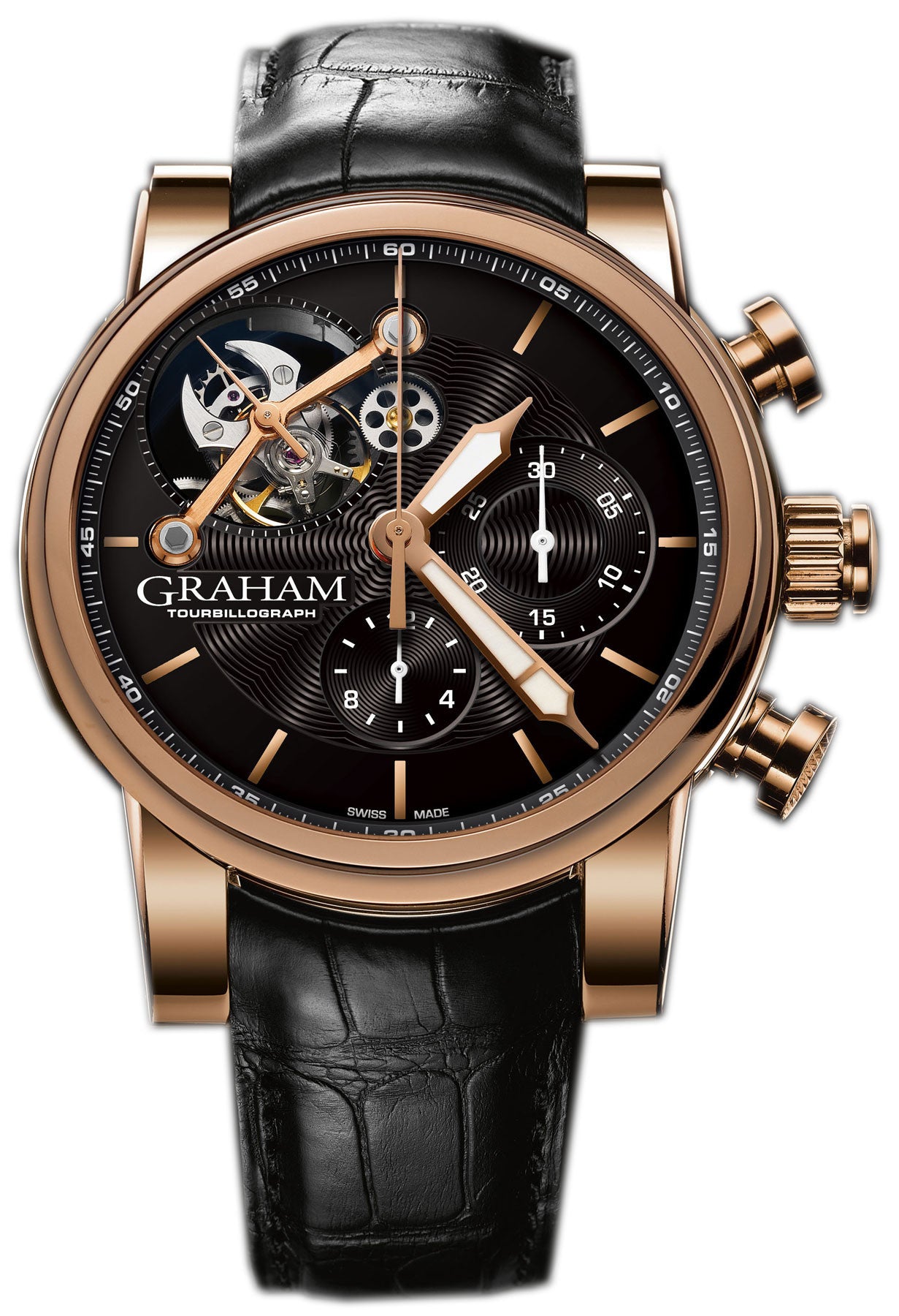 Graham Watch Silverstone Tourbillograph Woodcote Gold Limited Edition. Graham Watches, known as the father of the chronograph, George Graham was also the brains behind inventions such as the dead beat cylinder escapement, the first wall chronograph and the mercury pendulum. Perpetuating this spirit of remarkable innovations and technical expertise, Graham is now a contemporary watch brand dedicated to enthusiasts of the mechanical arts. Graham watches evoke a powerful fascination among connoisseurs with technically and aesthetically playful objects that combine originality, exclusivity and avantgarde. Based on inventive concepts determining design, functions and finish, the British brand made creates imposing wrist machines.
