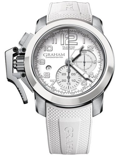 Graham Watch Chronofighter Black And White 2CCAD.W02A.K102N. Graham Watches, known as the father of the chronograph, George Graham was also the brains behind inventions such as the dead beat cylinder escapement, the first wall chronograph and the mercury pendulum. Perpetuating this spirit of remarkable innovations and technical expertise, Graham is now a contemporary watch brand dedicated to enthusiasts of the mechanical arts. Graham watches evoke a powerful fascination among connoisseurs with technically and aesthetically playful objects that combine originality, exclusivity and avantgarde. Based on inventive concepts determining design, functions and finish, the British brand made creates imposing wrist machines.