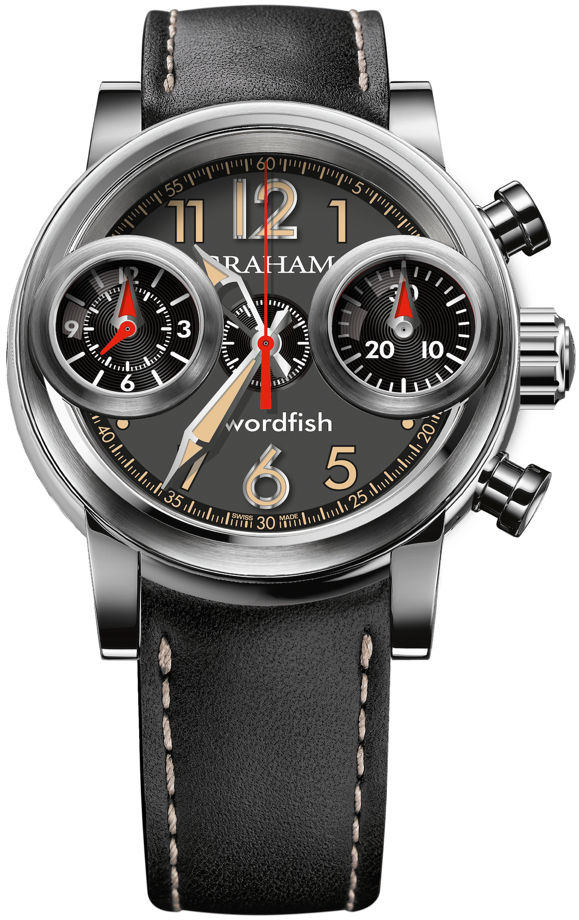 Graham Watch Swordfish 2SXAS.B06A.L167S. Graham Watches, known as the father of the chronograph, George Graham was also the brains behind inventions such as the dead beat cylinder escapement, the first wall chronograph and the mercury pendulum. Perpetuating this spirit of remarkable innovations and technical expertise, Graham is now a contemporary watch brand dedicated to enthusiasts of the mechanical arts. Graham watches evoke a powerful fascination among connoisseurs with technically and aesthetically playful objects that combine originality, exclusivity and avantgarde. Based on inventive concepts determining design, functions and finish, the British brand made creates imposing wrist machines. Come with extra Nato Strap.