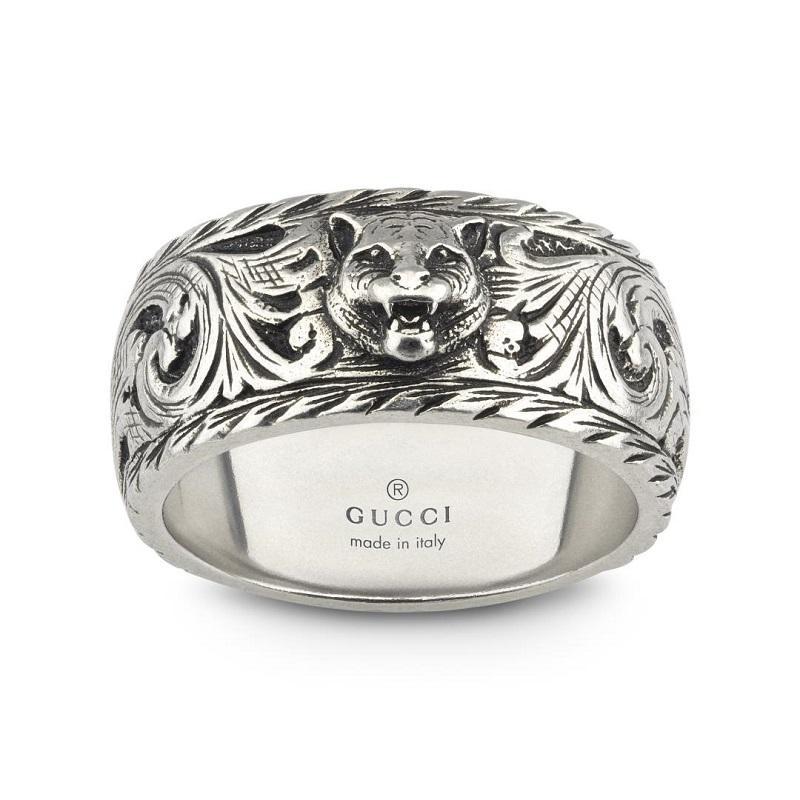 Gucci Feline Head Aged Sterling Silver Ring D - YBC433571001 (GUC-032/I)