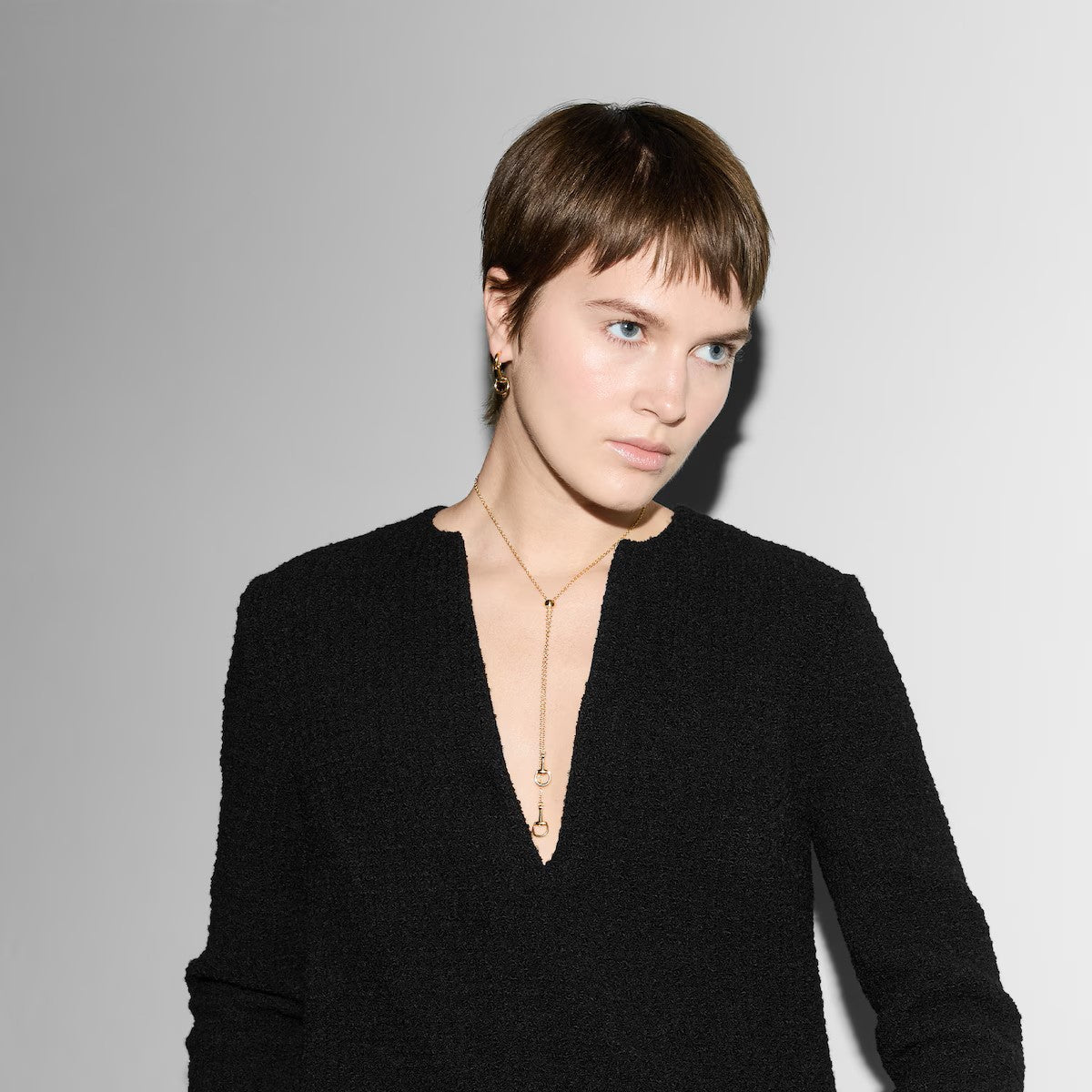 Gucci celebrates the 20th anniversary of the signature Horsebit jewelry line with classic and iconic pieces in 18k yellow gold. This chain necklace is defined by two half-horsebit pendant details.