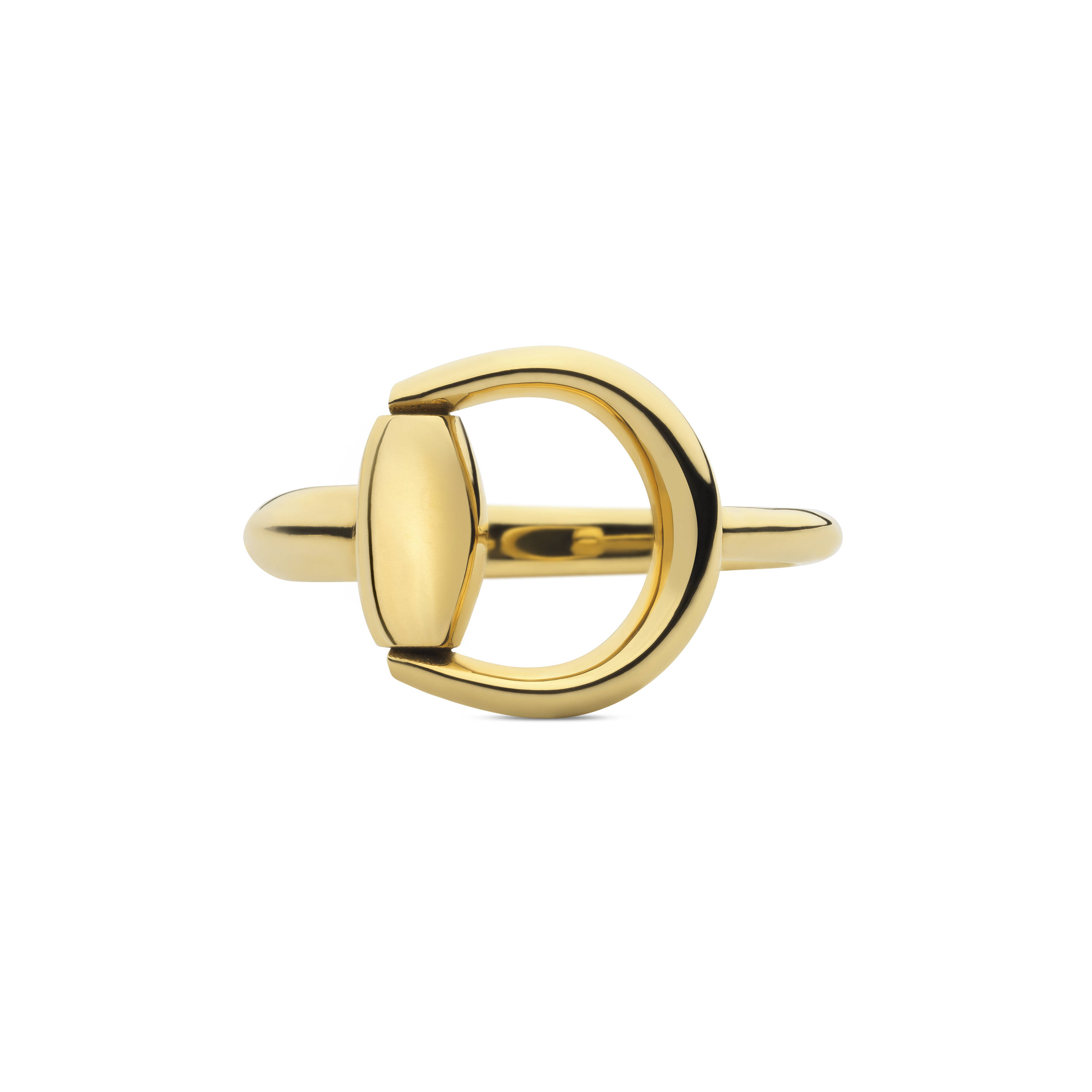Gucci celebrates the 20th anniversary of the signature Horsebit jewelry line with classic and iconic pieces in 18k yellow gold. This ring is defined by a half-horsebit variation of the signature detail.