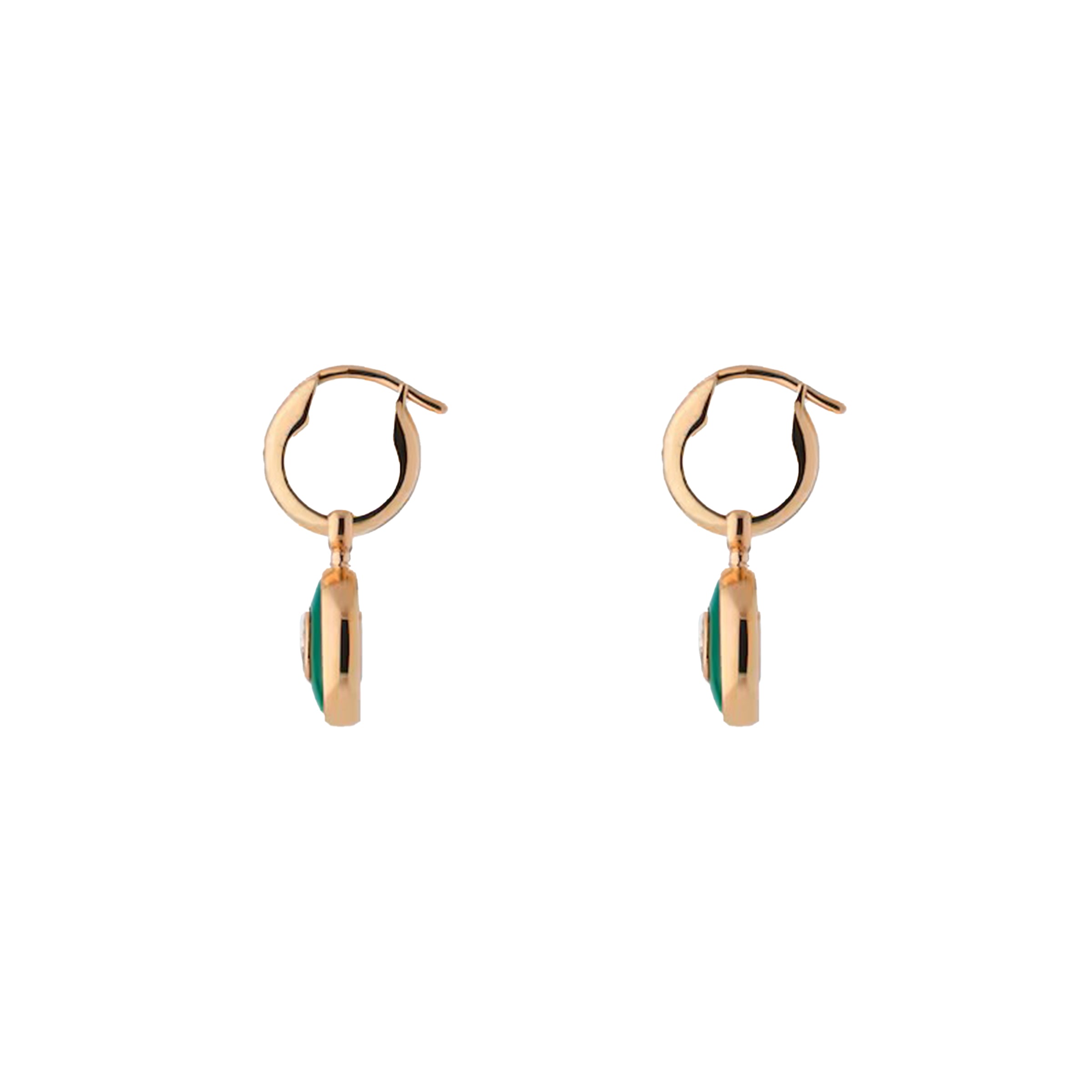 Gucci Interlocking 18ct Rose Gold Green Agate Hoop Earrings