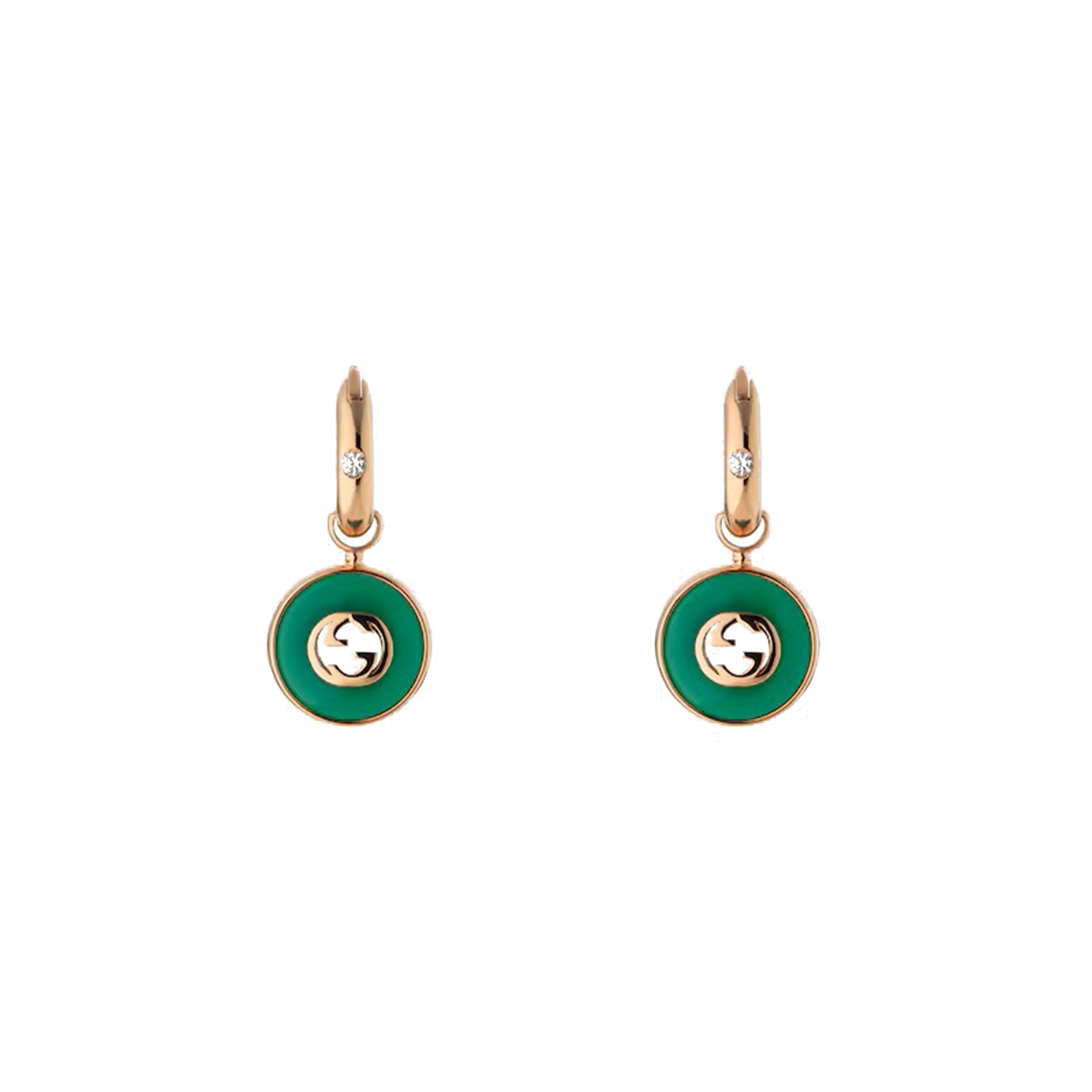 Gucci Interlocking 18ct Rose Gold Green Agate Hoop Earrings D - YBD786563002 (GUC-270)