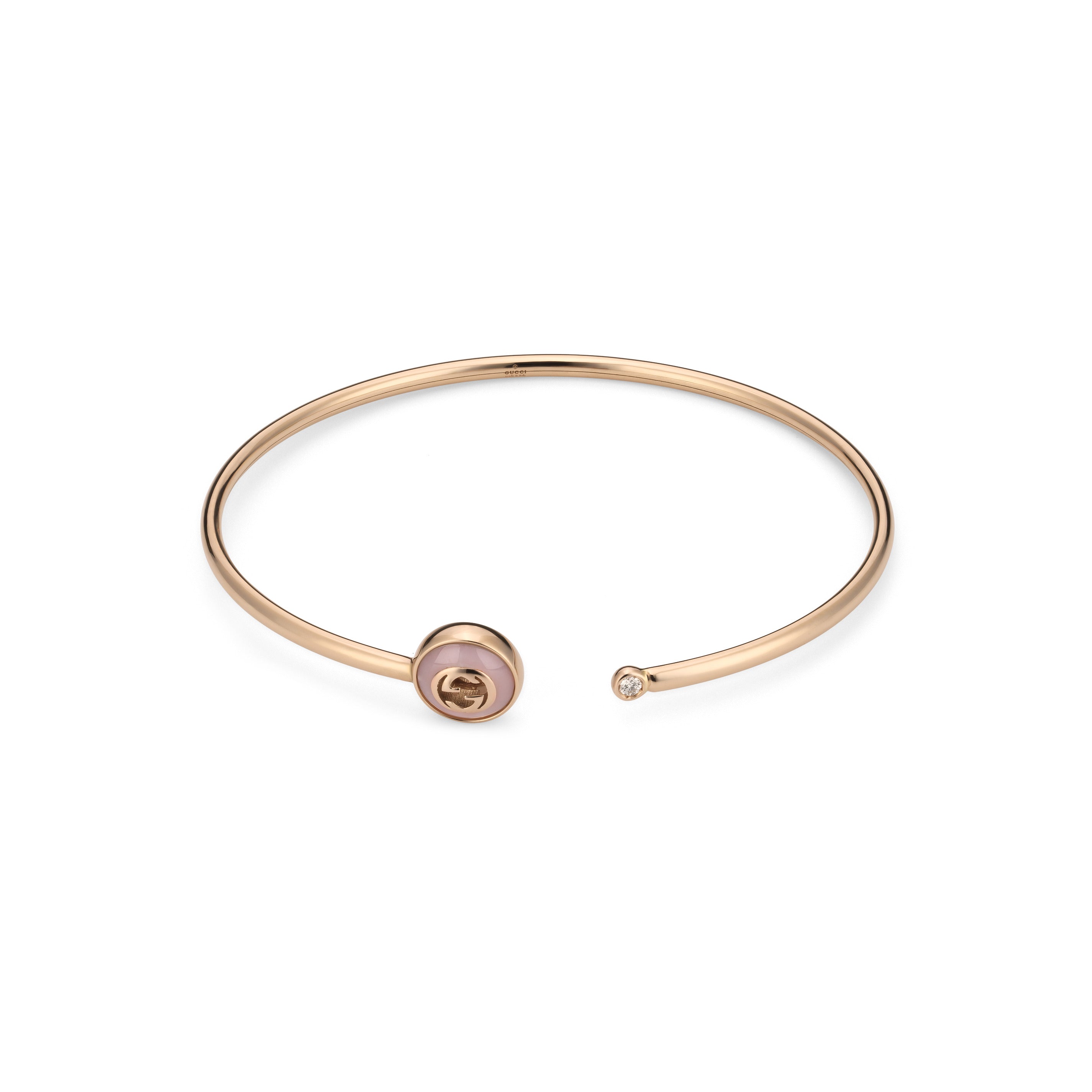 Gucci Interlocking G 18ct Rose Gold Diamond & Pink Opal Bangle - Carat Weight: Up to 0.25ct. YBA831846001/17 (GUC-393/16)