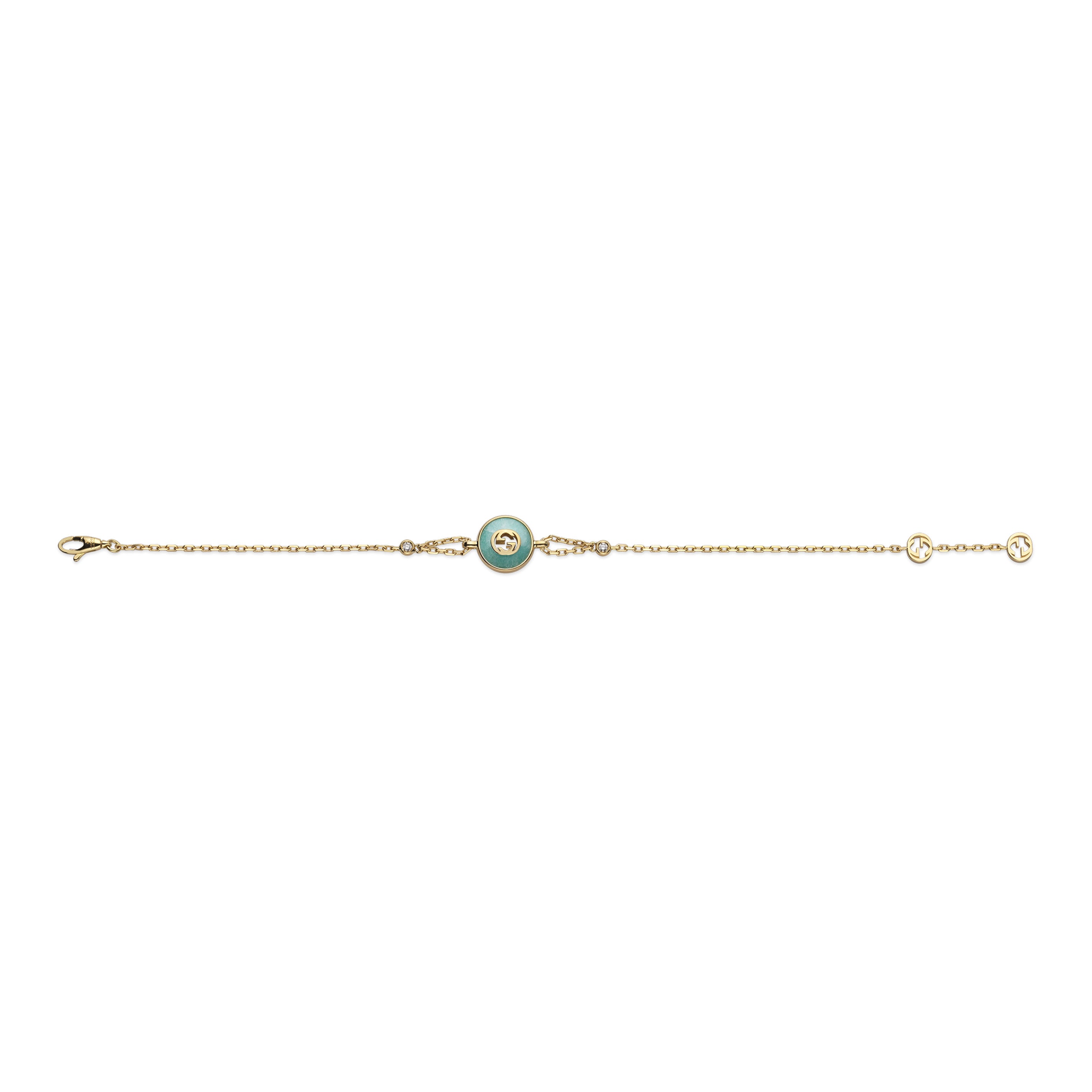 Gucci Interlocking G 18ct Yellow Gold Amazonite & Diamond Bracelet