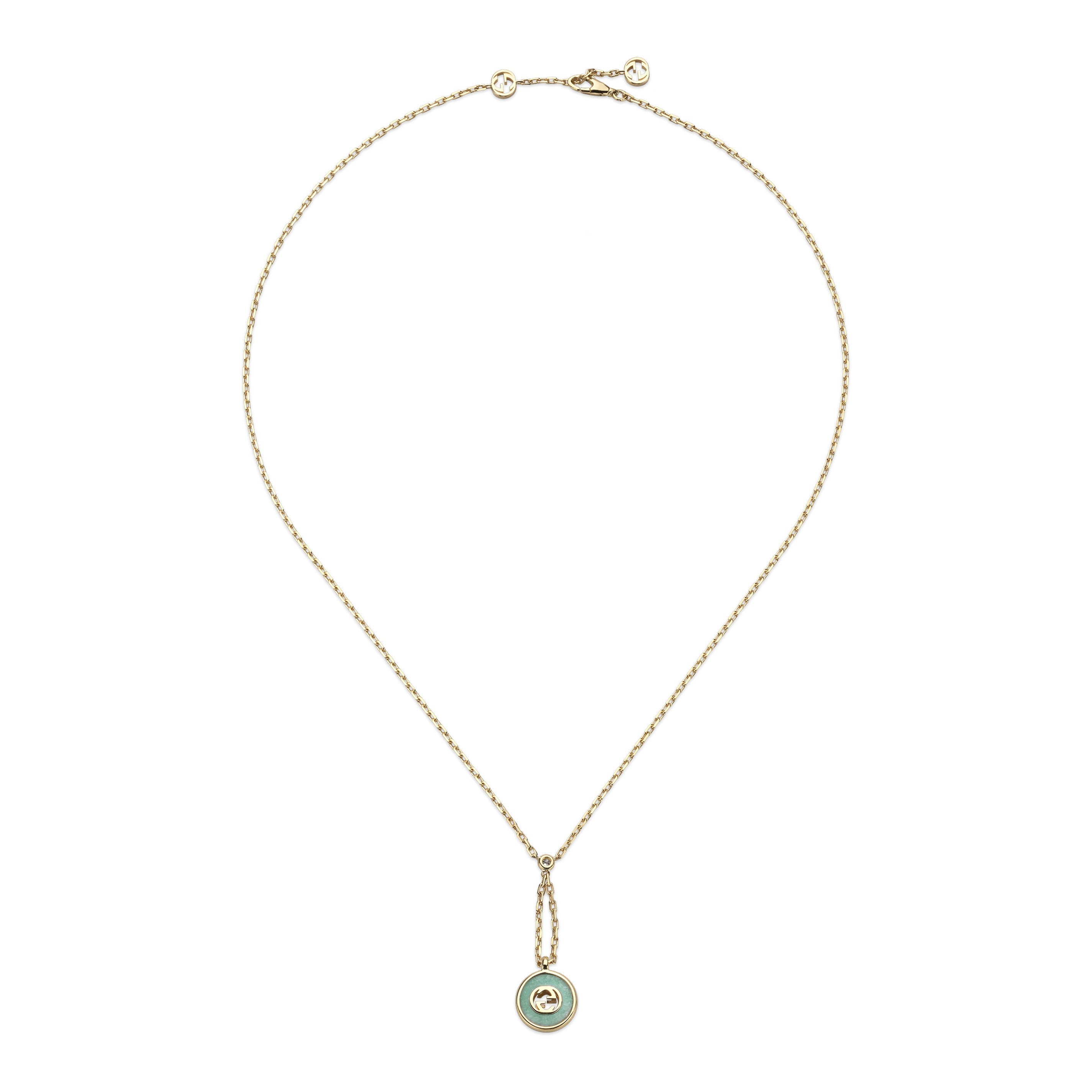 Gucci Interlocking G 18ct Yellow Gold Amazonite & Diamond Necklace - YBB832009001 (GUC-384)