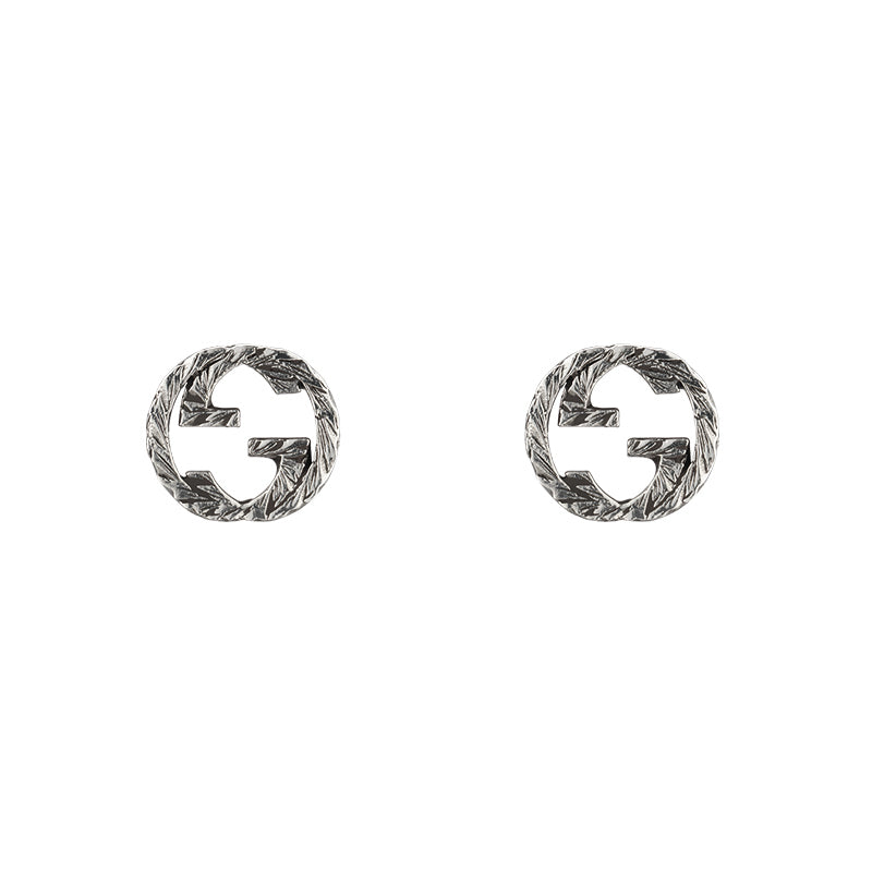 Gucci Interlocking G Motif Aged Sterling Silver Stud Earrings D - YBD457109001 (GUC-015)
