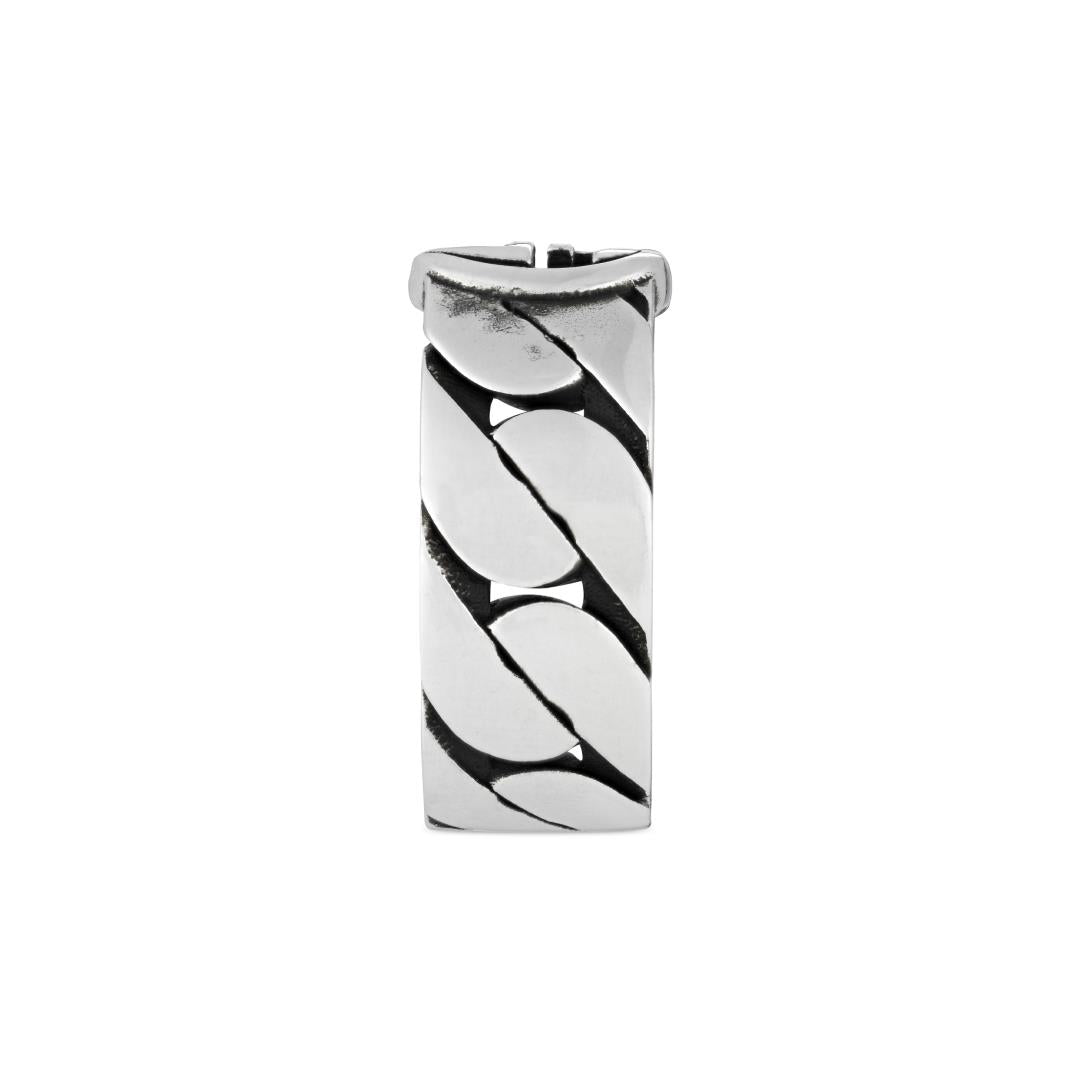 Recalling retro chain necklaces, this 925 sterling silver ring is crafted with an intricate construction. Throughout the collection, vintage inspirations are reimagined through the Gucci lens as a celebration of both the past and present. The House's monogram adds a finishing touch to the accessory. Band width: 8mm.
