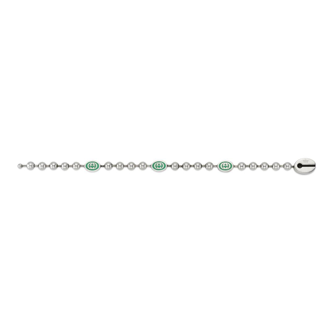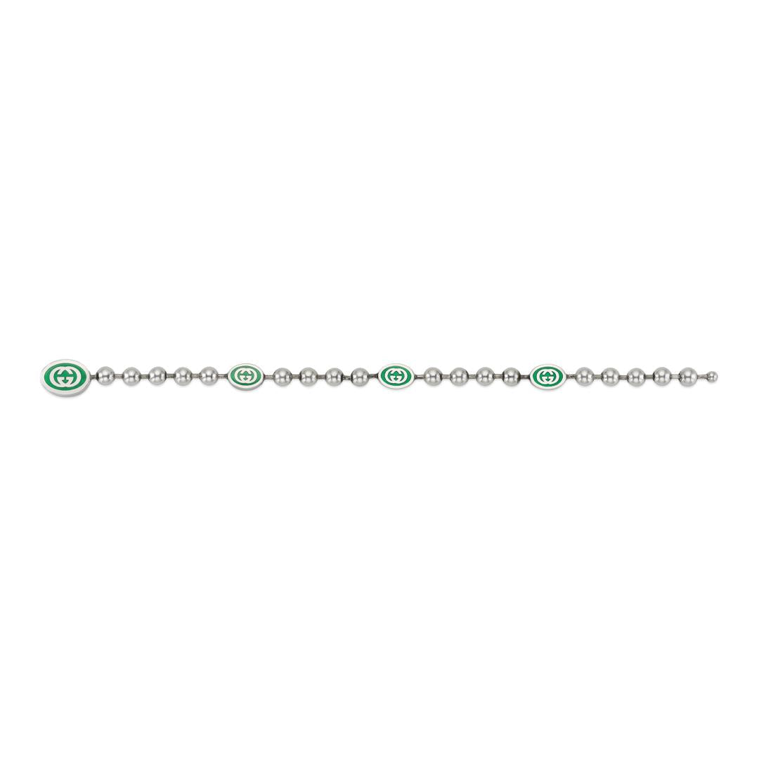 Gucci Interlocking G Sterling Silver Green Enamel Bracelet YBA701609001