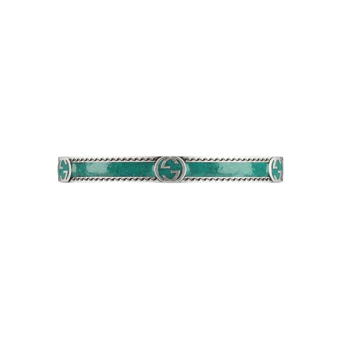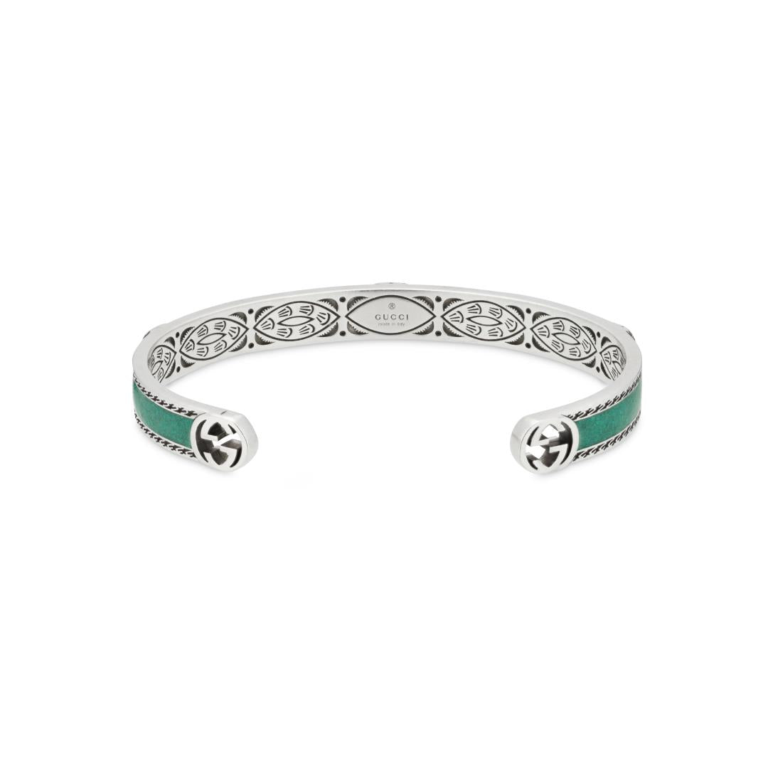 Gucci Interlocking G Sterling Silver Turquoise Enamel Cuff Bracelet YBA645570001