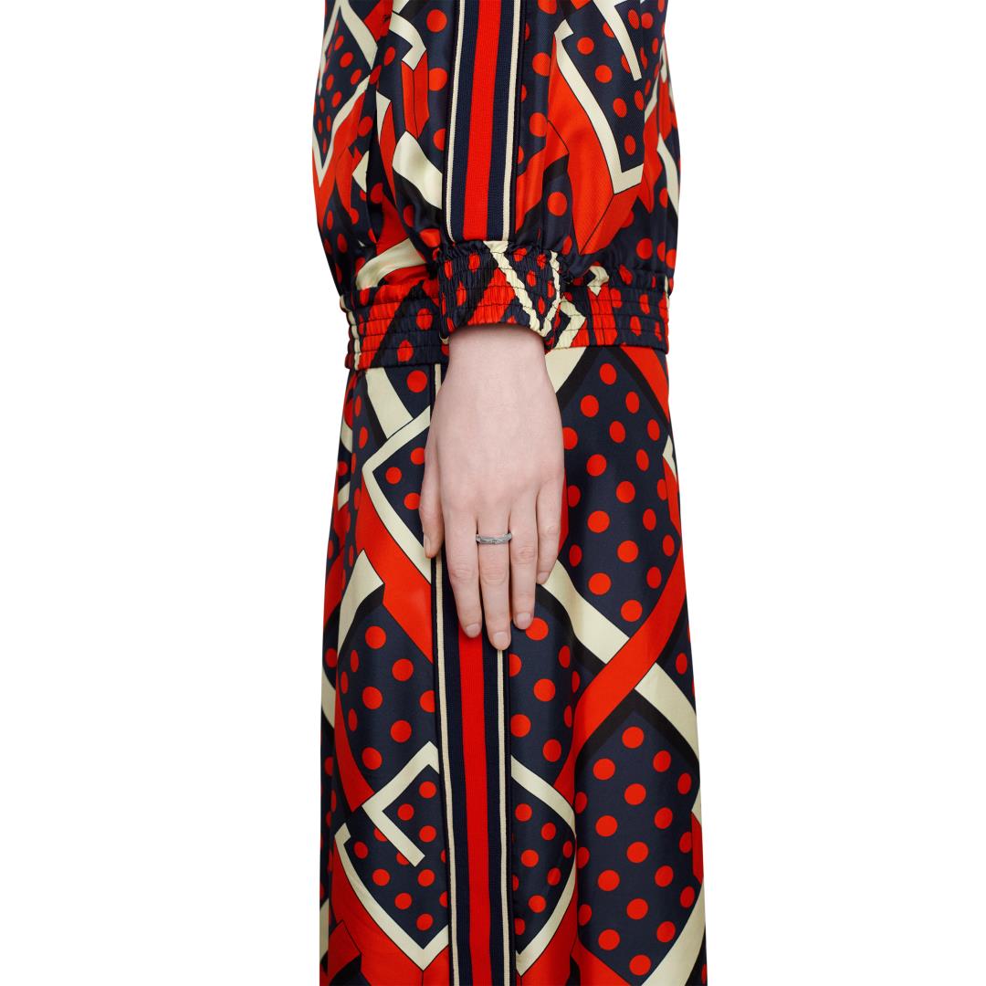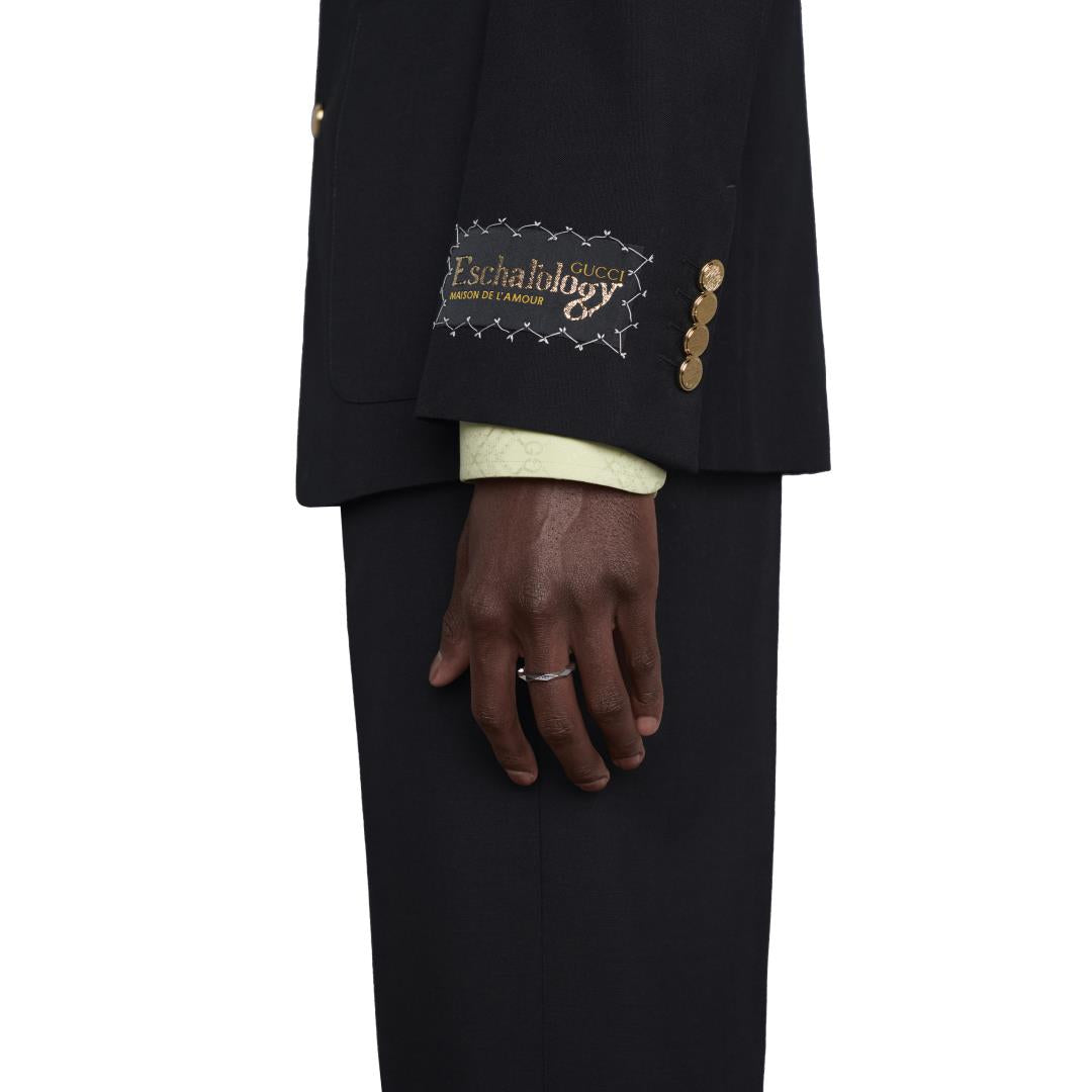 The Gucci Link to Love collection explores symbols of romance and love. The collection combines different gold tones and a mix of finishes blending the lines between masculine and feminine. Featuring the Gucci engraving, this 18ct white gold studded 4mm band ring has a stackable mechanism.