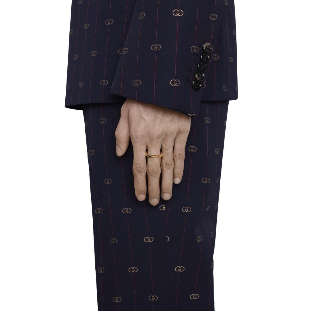 The Gucci Link to Love collection explores symbols of romance and love. The collection combines different gold tones and a mix of finishes blending the lines between masculine and feminine. Featuring the Gucci engraving, this 18ct yellow gold studded 4mm band ring has a stackable mechanism.
