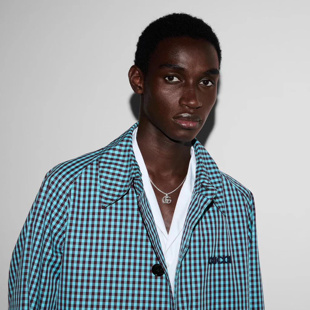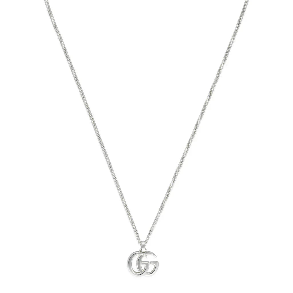 Creative director Sabato De Sarno revisits the GG Marmont emblem with a modern touch. The logo appears with a flat surface and bolder shape across matching sterling silver bracelets, rings, earrings and necklaces. Here the Double G pendant defines this gourmette chain necklace.