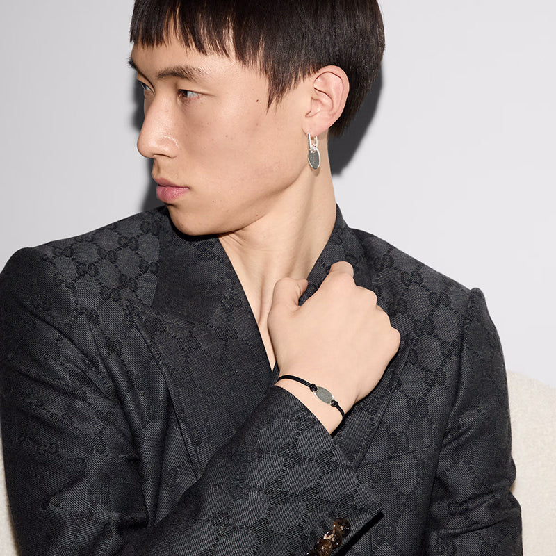Inspired by the summer spirit and beach clubs on the Italian coast, this item is part of Gucci Lido. Gucci revives its trademark logo atop oval tags, recalling the 1990s' tag necklaces with a refined touch. This black leather bracelet presents the engraving against a plain sterling silver base, complete with sliding knot closure.