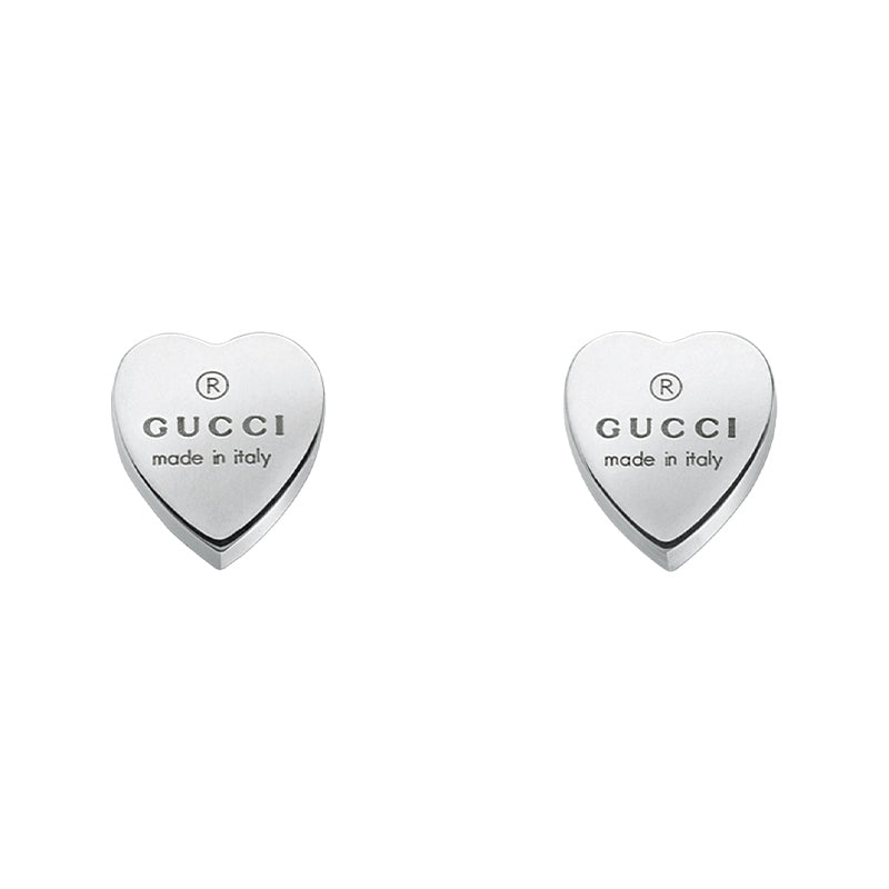 Made in Italy with the finest quality 925 sterling silver, the Gucci Heart stud earrings are an elegant symbol of love. The contemporary design is completed by the Gucci trademark stamped on the heart.