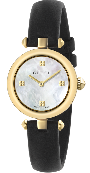 Gucci Watch Diamantissima Ladies YA141505. Combining Italian flair with Swiss craftsmanship, Gucci watches have effortlessly ascended to the very pinnacle of the hierarchy for luxury and fashion watches. Their modern and romantic designs have become renowned around the globe for taking a fashionable and bold step ahead of every other designer, always anticipating the industry’s next eye catching trend.