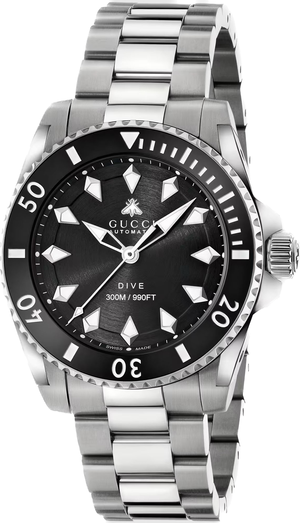 Gucci Watch Dive Automatic YA136353. The Gucci Dive line combines classic and contemporary performance watches crafted from steel and rubber, including new designs in bio-based materials.