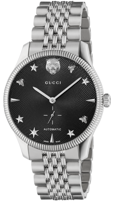 Gucci Watch G-Timeless Mens YA126353. Combining Italian flair with Swiss craftsmanship, Gucci watches have effortlessly ascended to the very pinnacle of the hierarchy for luxury and fashion watches. Their modern and romantic designs have become renowned around the globe for taking a fashionable and bold step ahead of every other designer, always anticipating the industry’s next eye catching trend.
