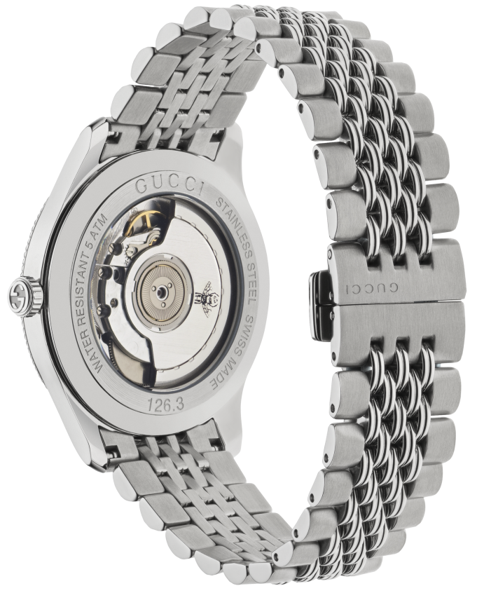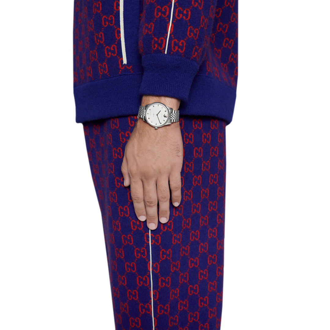 Gucci Watch G-Timeless Mens YA126354. Combining Italian flair with Swiss craftsmanship, Gucci watches have effortlessly ascended to the very pinnacle of the hierarchy for luxury and fashion watches. Their modern and romantic designs have become renowned around the globe for taking a fashionable and bold step ahead of every other designer, always anticipating the industry’s next eye catching trend.