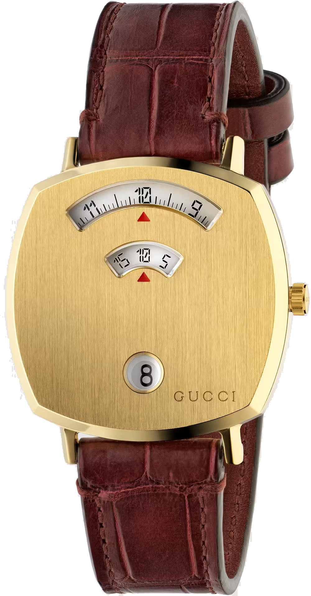Gucci Watch Grip Ladies YA157402. Combining Italian flair with Swiss craftsmanship, Gucci watches have effortlessly ascended to the very pinnacle of the hierarchy for luxury and fashion watches. Their modern and romantic designs have become renowned around the globe for taking a fashionable and bold step ahead of every other designer, always anticipating the industry’s next eye catching trend.