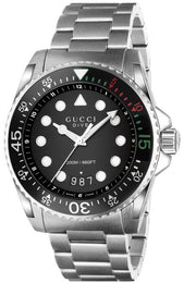 Gucci Watch Gucci Dive Mens YA136208A. Combining Italian flair with Swiss craftsmanship, Gucci watches have effortlessly ascended to the very pinnacle of the hierarchy for luxury and fashion watches. Their modern and romantic designs have become renowned around the globe for taking a fashionable and bold step ahead of every other designer, always anticipating the industry’s next eye catching trend.