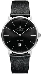Hamilton Watch American Classic Intra-Matic Auto H38755731. Powered by its ultra slim automatic caliber, the INTRA MATIC is available in 38mm and 42mm. It embodies Hamiltons vision of purity and quintessential design. Never was the word timeless so appropriate.