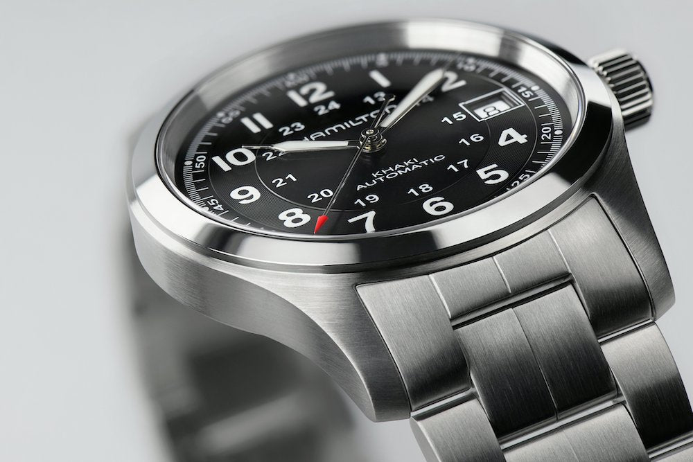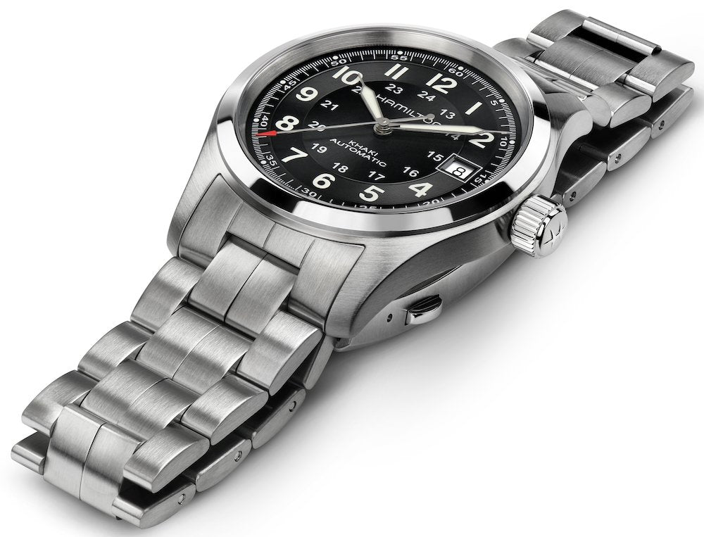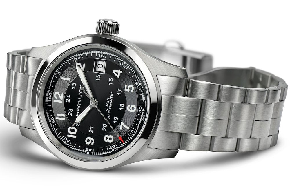 Hamilton Watch Khaki Field Auto . Rugged and edgy the Khaki Field Auto line of watches is perfect for the outdoorsmen. Each piece in the line has bold dials with brightly colored indexes and wearers have a choice of leather strap or stainless steel bracelets, each made for working hands. These watches are designed for the adventurous, active wearer.