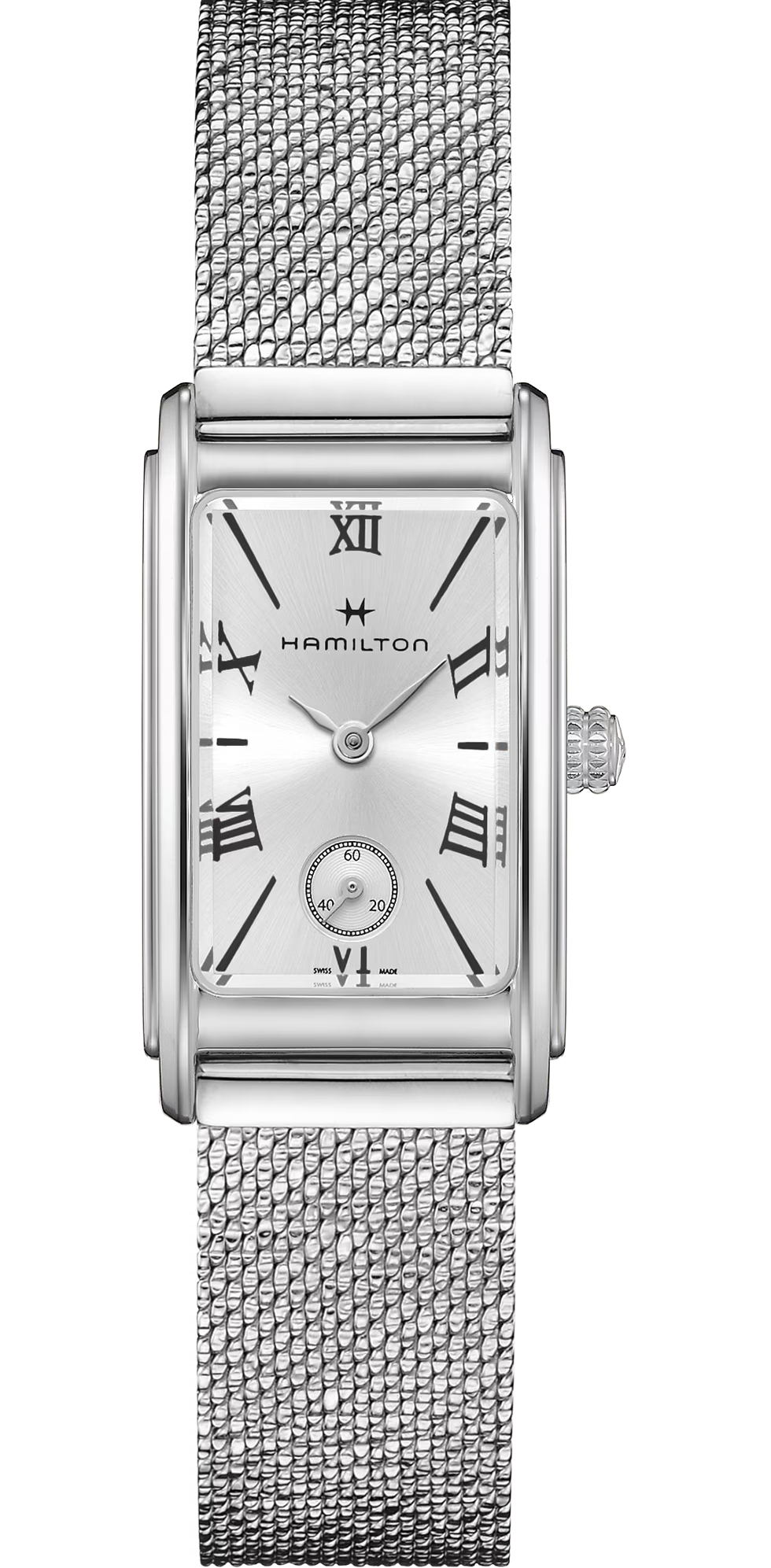 Hamilton Watch American Classic Ardmore H11221150. An Art Deco classic reimagined for modern times, the American Classic Ardmore is a sophisticated choice for every day wear. Taking inspiration from the 1935 model, the case is curved to fit the wrist seamlessly, maintaining its versatile Art Deco appeal, with a running seconds subdial, Roman numerals, delicate proportions and high quality materials.