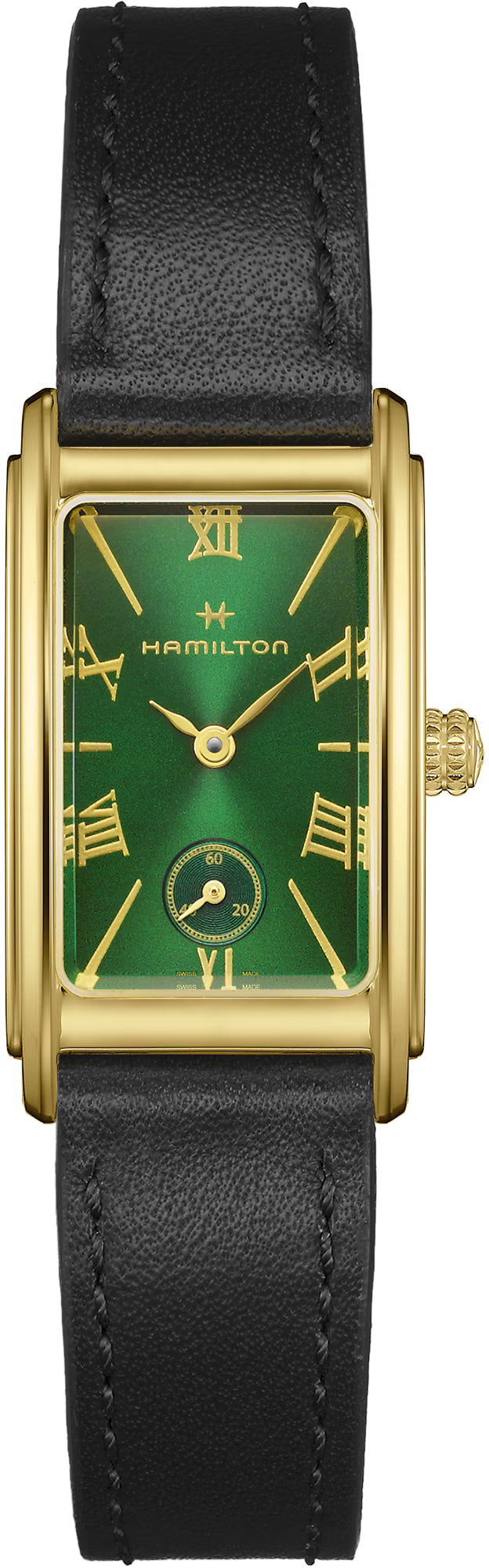 Hamilton Watch American Classic Ardmore H11261760. An Art Deco classic reimagined for modern times, the American Classic Ardmore is a sophisticated choice for every day wear. Taking inspiration from the 1935 model, the case is curved to fit the wrist seamlessly, maintaining its versatile Art Deco appeal, with a running seconds subdial, Roman numerals, delicate proportions and high quality materials.