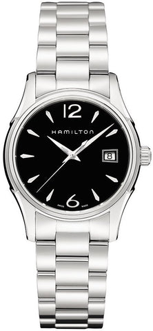 Hamilton Watch American Classic Jazzmaster Lady Quartz H32351135. The simple, unassuming style of the Jazzmaster Lady creates an image of grace, poise and class. Available in 27mm, 30mm and 34 mm case size, these Quartz timepieces are offered in varying bracelet and strap colors and styles. Dials are available in black, white and mother of pearl with several models offering the option of diamond accents.