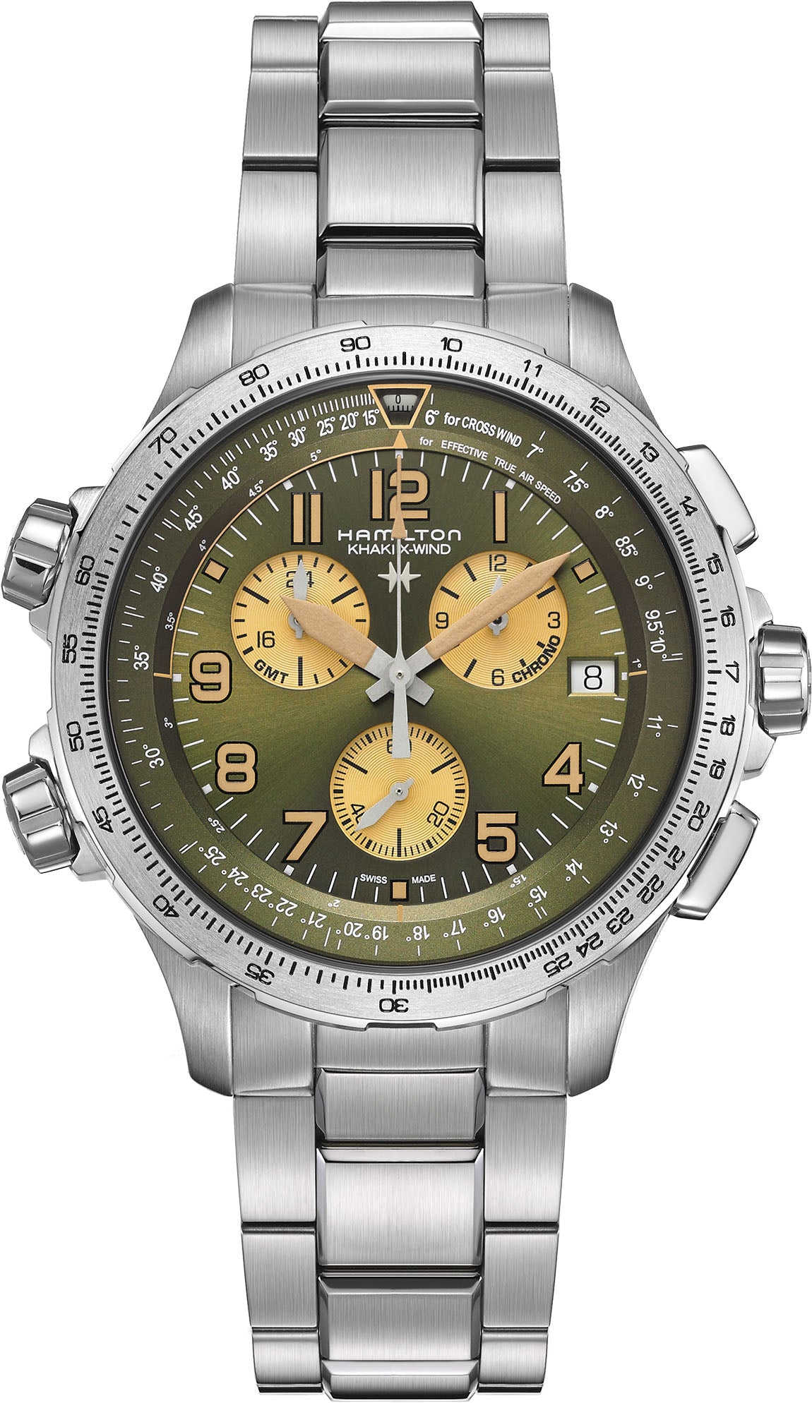 Hamilton Watch Khaki Aviation X-Wind GMT Chrono Quartz H77932160. Are you looking for the perfect Swiss pilot’s watch? With our prestigious heritage of serving the flying community Hamilton aviator watches are reliable and have a reputation for accuracy. Whether you’re looking for an automatic watch, GMT watch or pilot’s chronograph, you’ll find the ideal watch in our collection of precision timepieces made for professional pilots. Adventure meets accuracy in our Khaki Aviation watches.