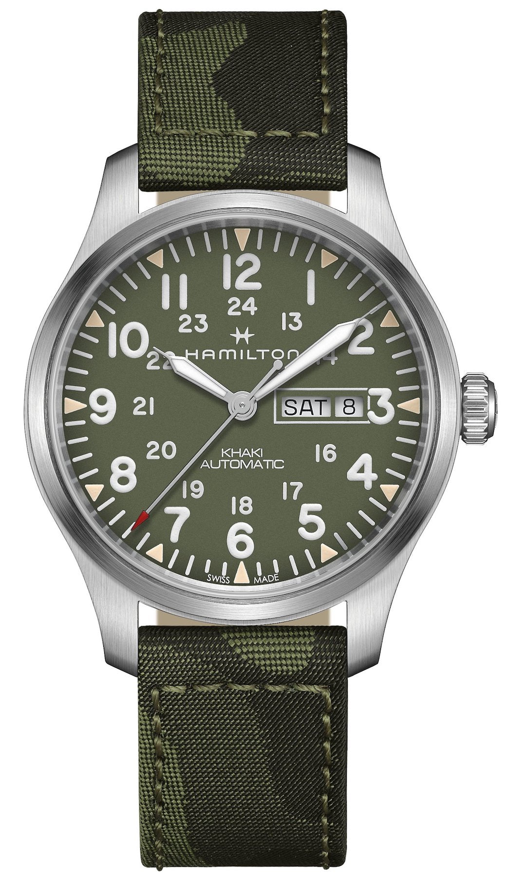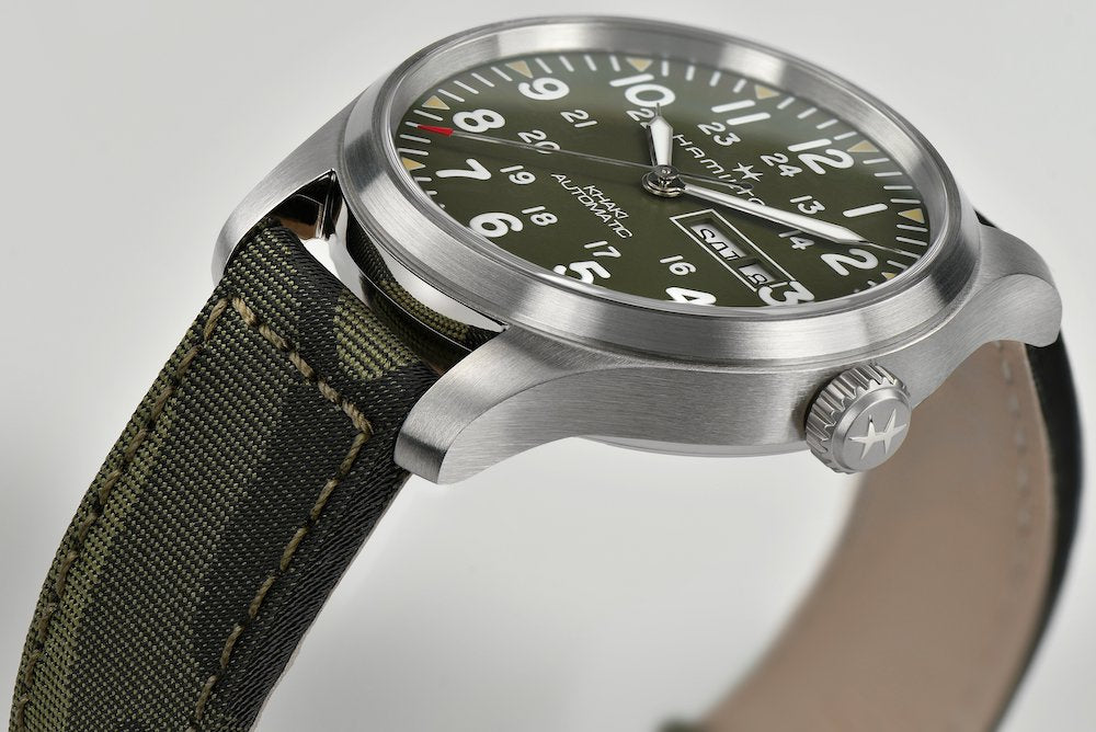 Hamilton Watch Khaki Field Day Date Auto H70535061. Ideal for lifes adventurers who have no intention of compromising on functionality or style, the Khaki Field Day Date Automatic is powered by the H 30 movement with up to 80 hours of power reserve. Its a timepiece you can rely on out in the field.