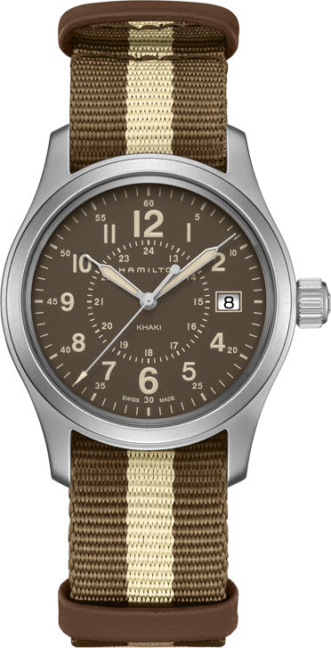 Hamilton Watch Khaki Field Quartz H68201093. Proud of its military heritage, this watch has a passion for detail and distinctive styling. Its strong core identity equips it for a variety of looks and ensures that it speaks volumes about the wearer. A quartz movement adds dependability and convenience to twenty first century lifestyle operations.