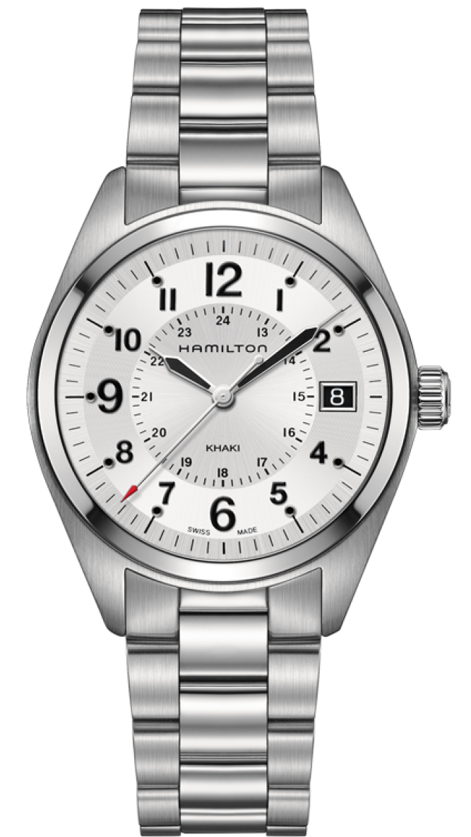Hamilton Watch Khaki Field Quartz H68551153. Proud of its military heritage, this watch has a passion for detail and distinctive styling. Its strong core identity equips it for a variety of looks and ensures that it speaks volumes about the wearer. A quartz movement adds dependability and convenience to twenty first century lifestyle operations.