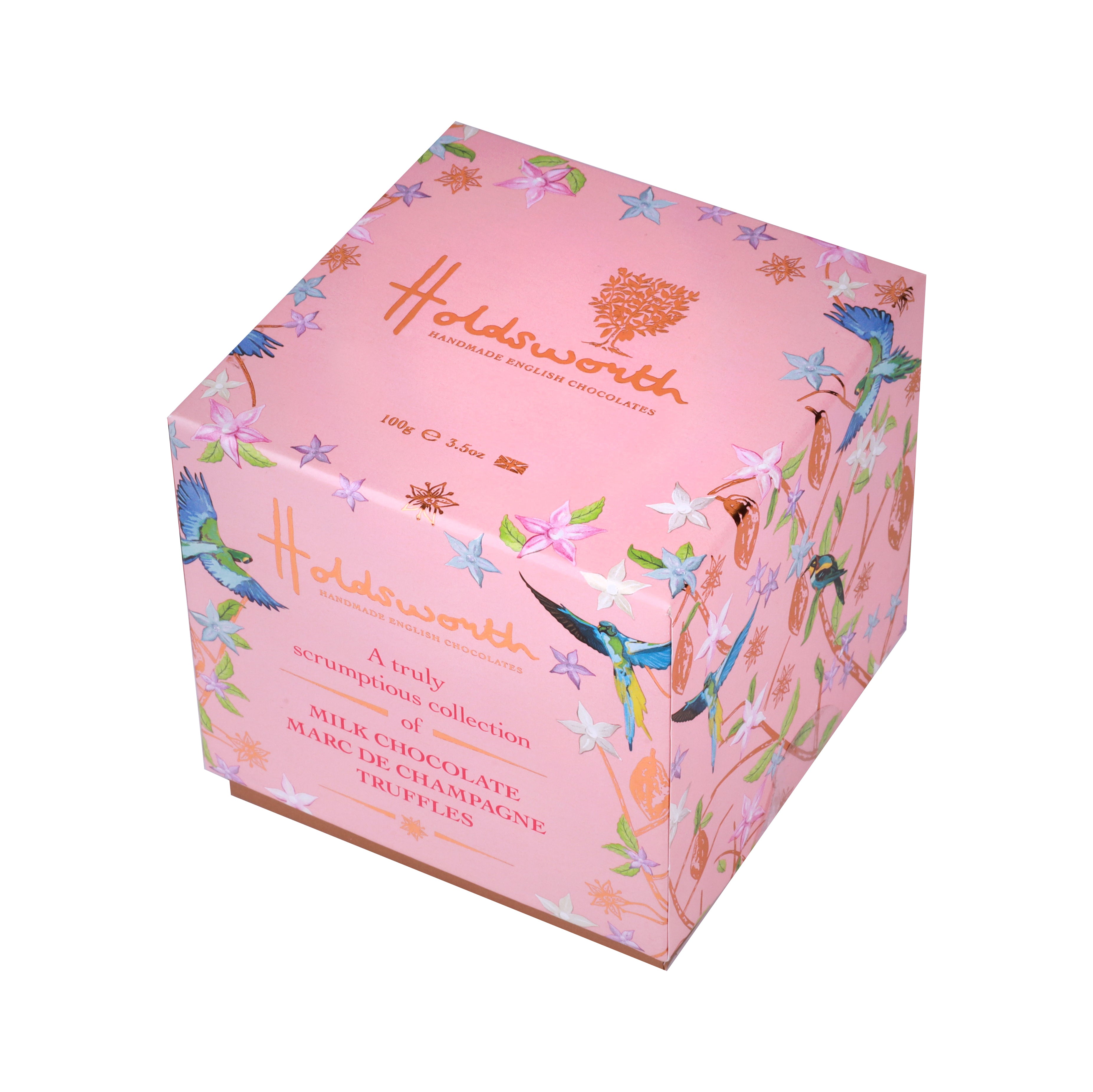 Holdsworth Handmade Chocolates Marc De Champagne Pink Cube 100g